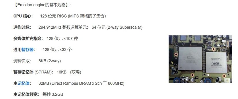 这个配置上我们可以看到PS2的CPU使用的是Emotion Engine 294.912 MHz,这个是何方神圣呢?