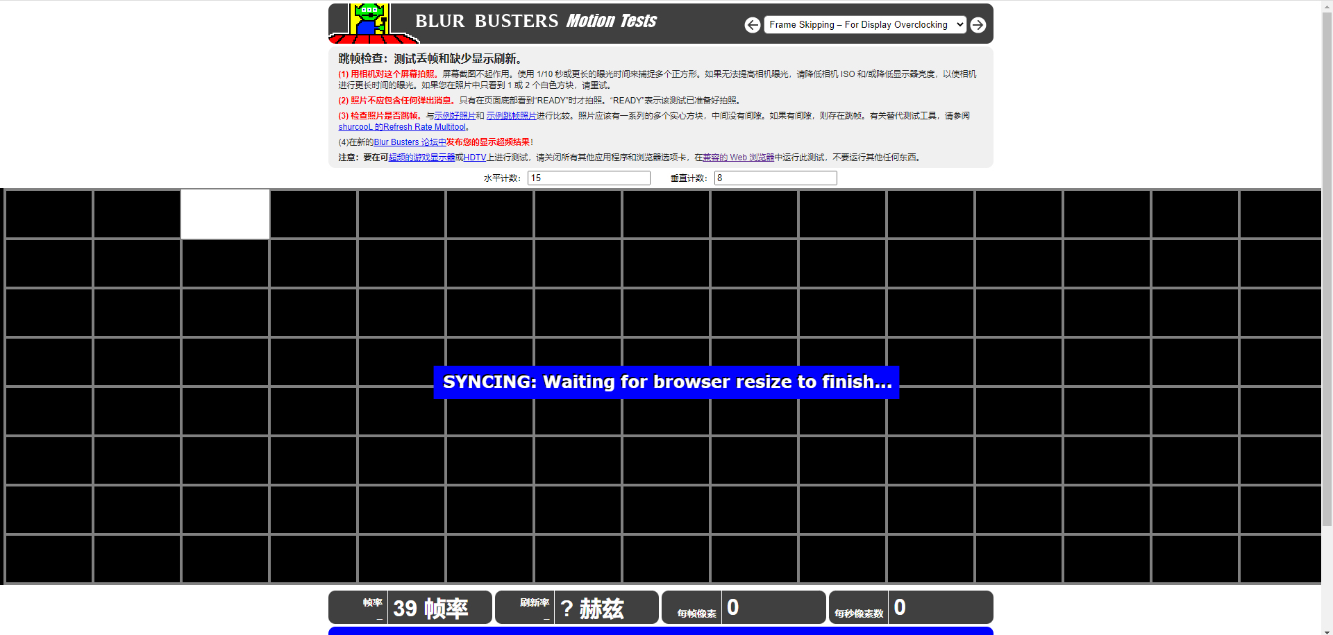 如果大家要检测自己显示器有没有跳帧,我推荐大家去这个网站(UFOTEST)https://www.testufo.com/frameskipping。记得要使用支持高帧率的浏览器,比如谷歌,火狐之类的。这也是比较知名的显示器测试网站,所有测试的过程你自己都能看得到,而不是像什么大师一样,完全就是黑箱检测。