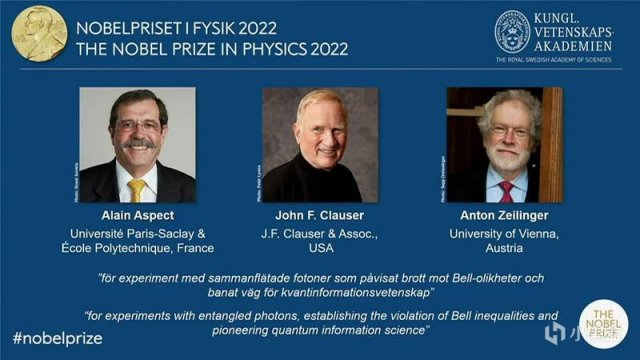 10月4日,今年的三位獲獎者分別爲法國科學家阿蘭·阿斯佩(Alain Aspect)、美國科學家約翰·弗朗西斯·克勞澤(John F. Clauser)和奧地利科學家安東·塞林格(Anton Zeilinger),三人主要研究量子信息科學方向,共享1000萬瑞典克朗獎金!