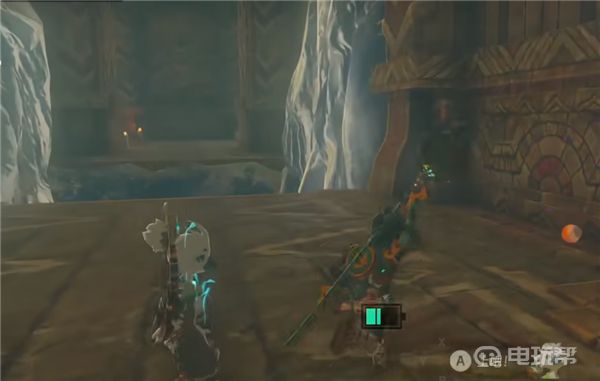 用滑翔傘穿過激光,達到風之神殿的B1層,然後在牆壁兩邊能看到第一個開關和一個寶箱。