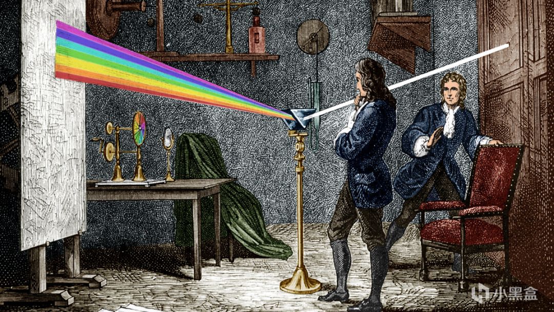1672年,當時年僅29歲的牛頓,因發明反射望遠鏡,成爲皇家學會的一員,受到日後爭執人物萊布尼茨的關注,牛頓透過三棱鏡將白光發散成可見光譜的觀察,發現光的色散原理;胡克和波義耳擔任研究成果的評審,胡克聲稱牛頓關於光色彩複合是偷了他的思想,而牛頓“原創”的微粒說則不值一提,僅僅是“假說”而已。