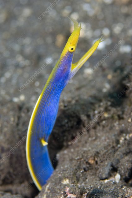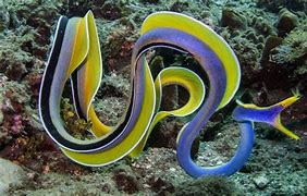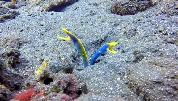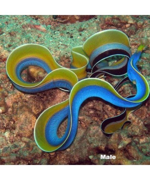PS:以前人們錯把藍色形態和黑色形態認定是兩個物種。還專門命名了名稱,R. quaesita用於藍帶鰻魚,而R. amboinensis則用於黑帶鰻魚。