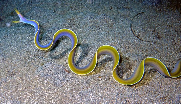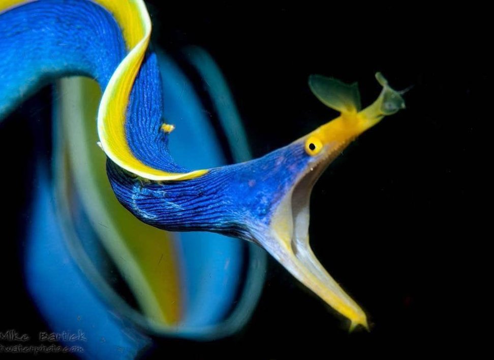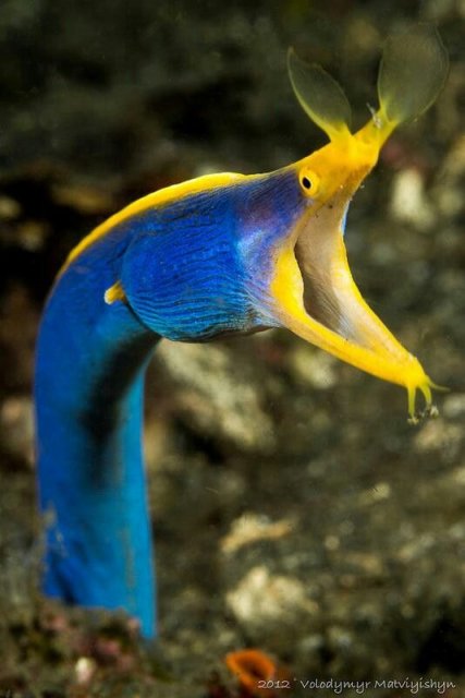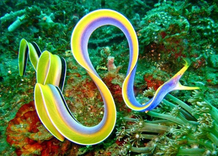 是海鰻的一種,也是管鼻鯙屬的唯一成員。因其自帶表情包的臉與曼妙的身姿組合在一起,極其有違和感而出名。是目前最受水下攝影師和魚友們追捧的物種之一。