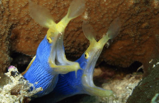 但它們其實是是兇猛的捕食魚類,比粗自己10倍以上的豹斑海鱔還兇猛。