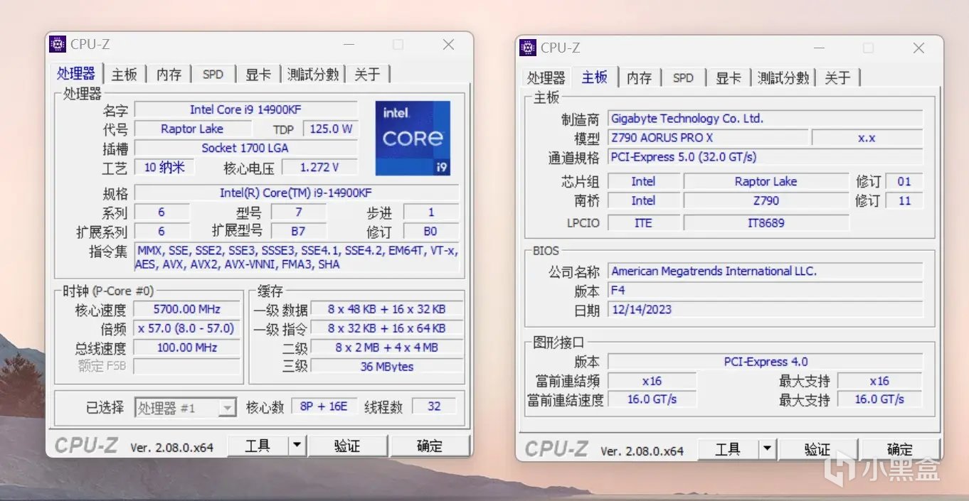 运行CPU-Z软件,CPU是英特尔i9-1490KF,主板是技嘉的Z790 AORUS PRO X。