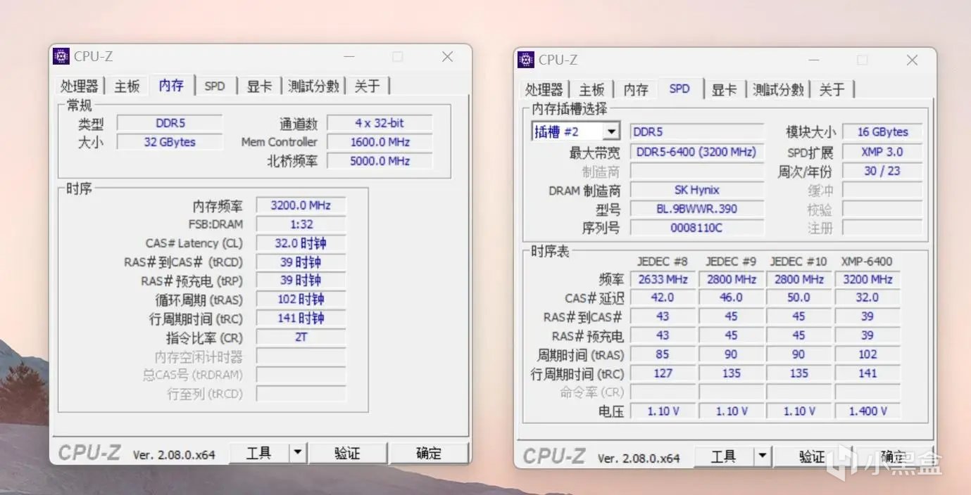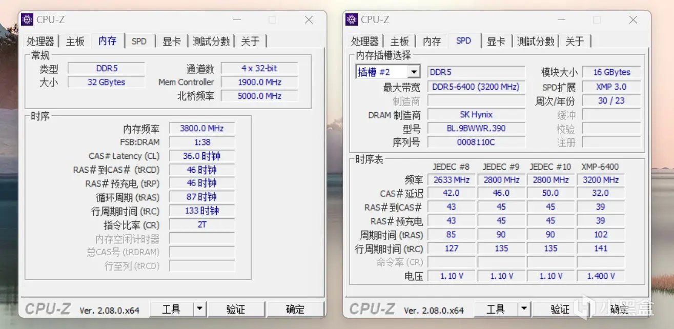 内存是宏碁DDR5内存,开启XMP后是6400MHz。