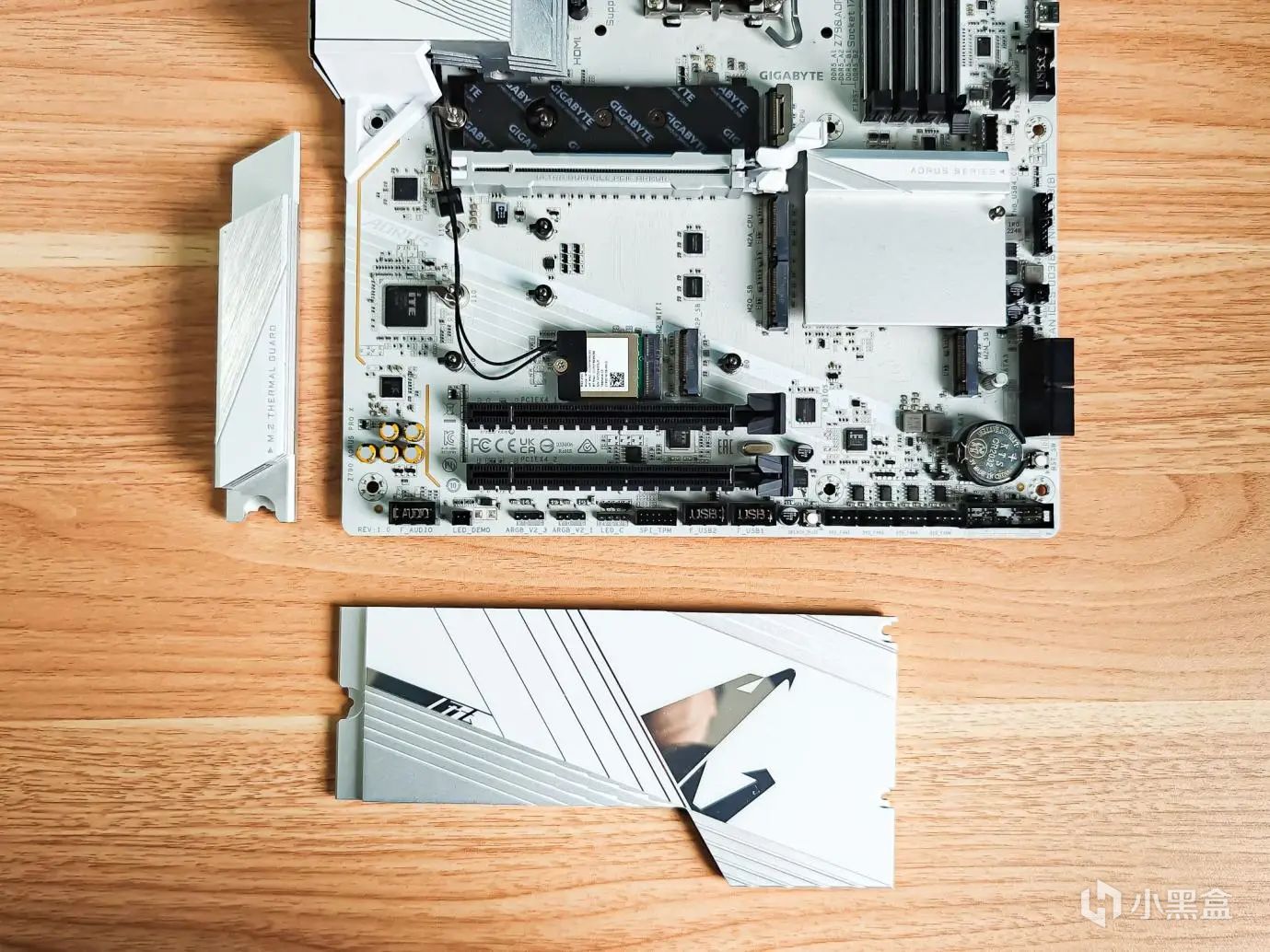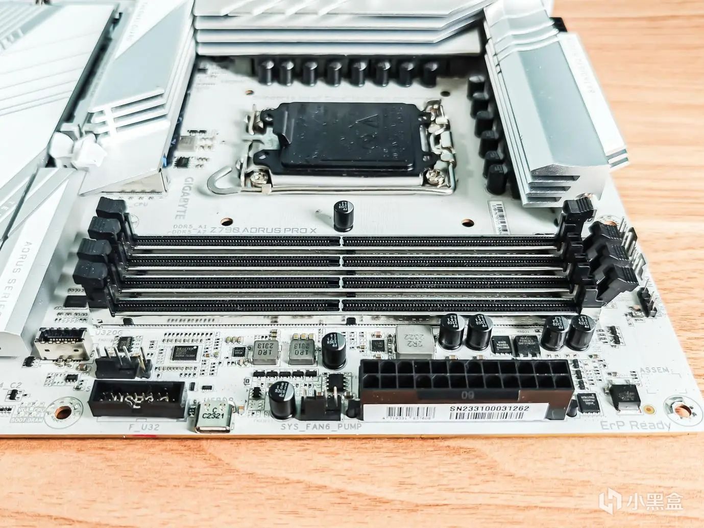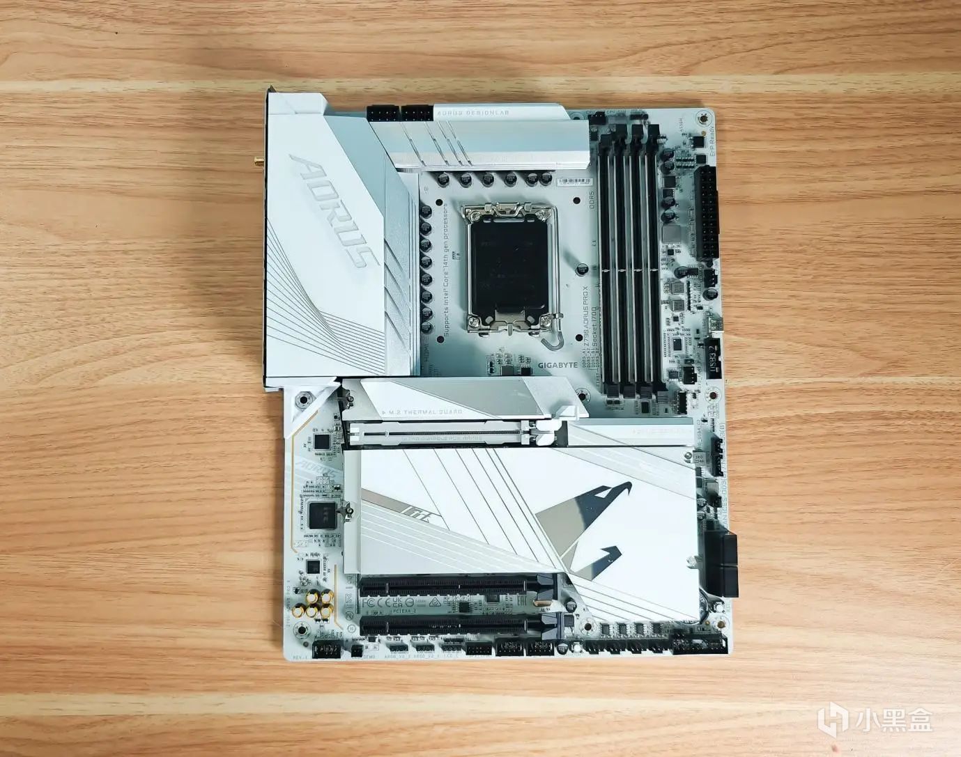 安装从主板开始,主板选择的是技嘉的Z790 AORUS PRO X主板,又称技嘉Z790冰雕X。它是款白色主板,性价比好。主板的底色是白色略显点灰,而一体式散热片和散热装甲,则同样是白色,但相对更亮丽一些。散热片上面还有字体和条纹装饰让主板整体显得不单调。