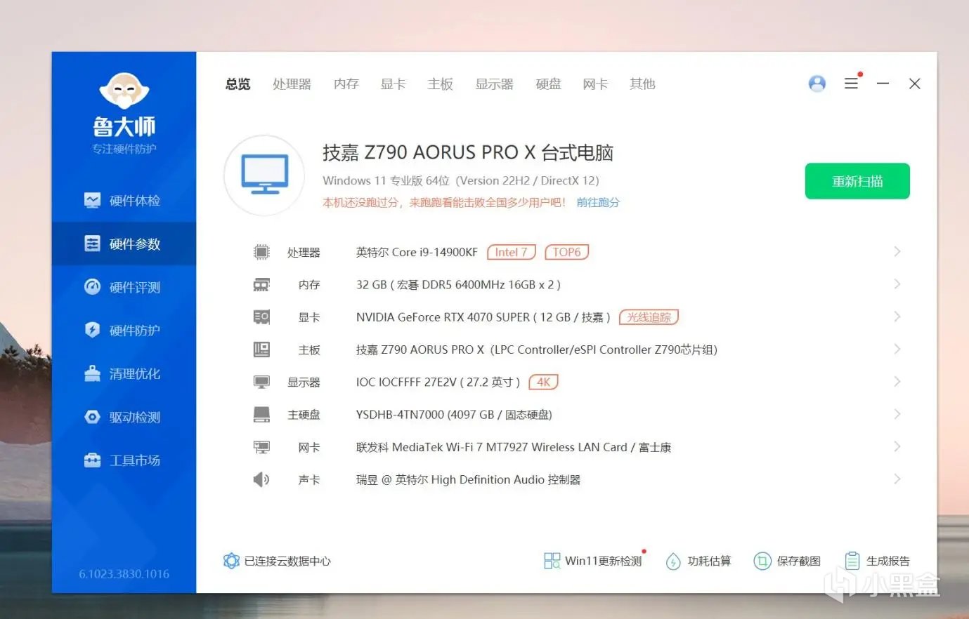 显卡是技嘉RTX 4070 SUPER,12GB GDDR6X显存。