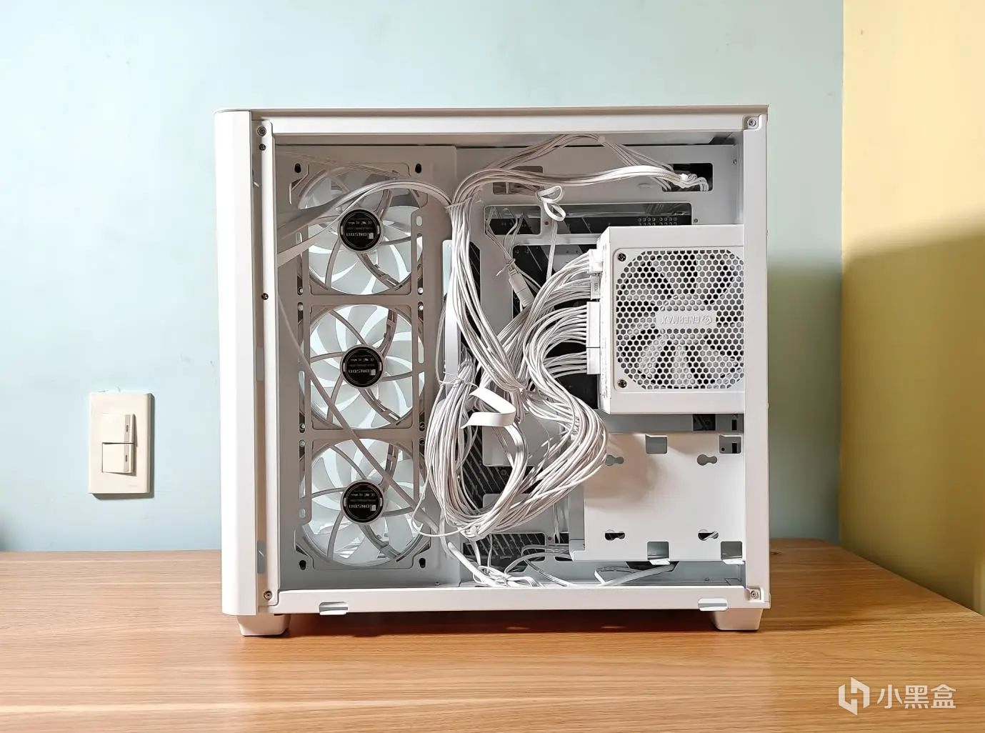 然后在底部和侧面安装好反向风扇,是乔思伯的白色插接风扇ZG-120,风扇间是插接连接的,减少线材,更加牢固。