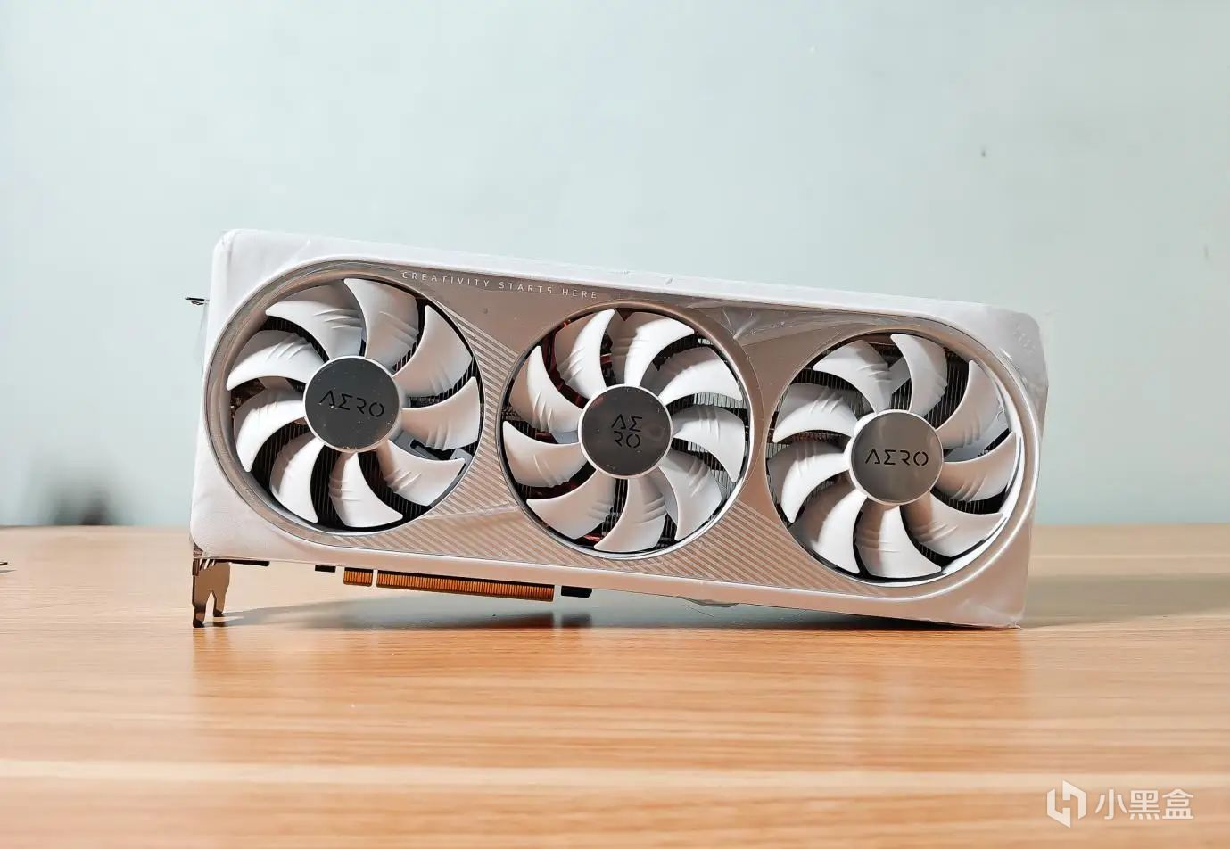 显卡使用的是技嘉的雪鹰 GeForce RTX 4070SUPER AERO OC 12G,一款全白色的显卡。3个风扇采用了正逆转设计,可以减少扰流增大风压,风扇扇叶表面有导流槽。