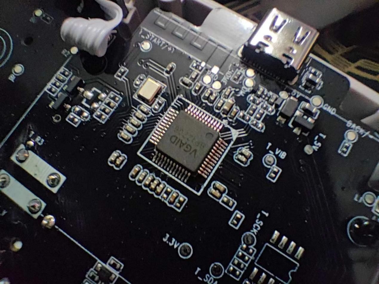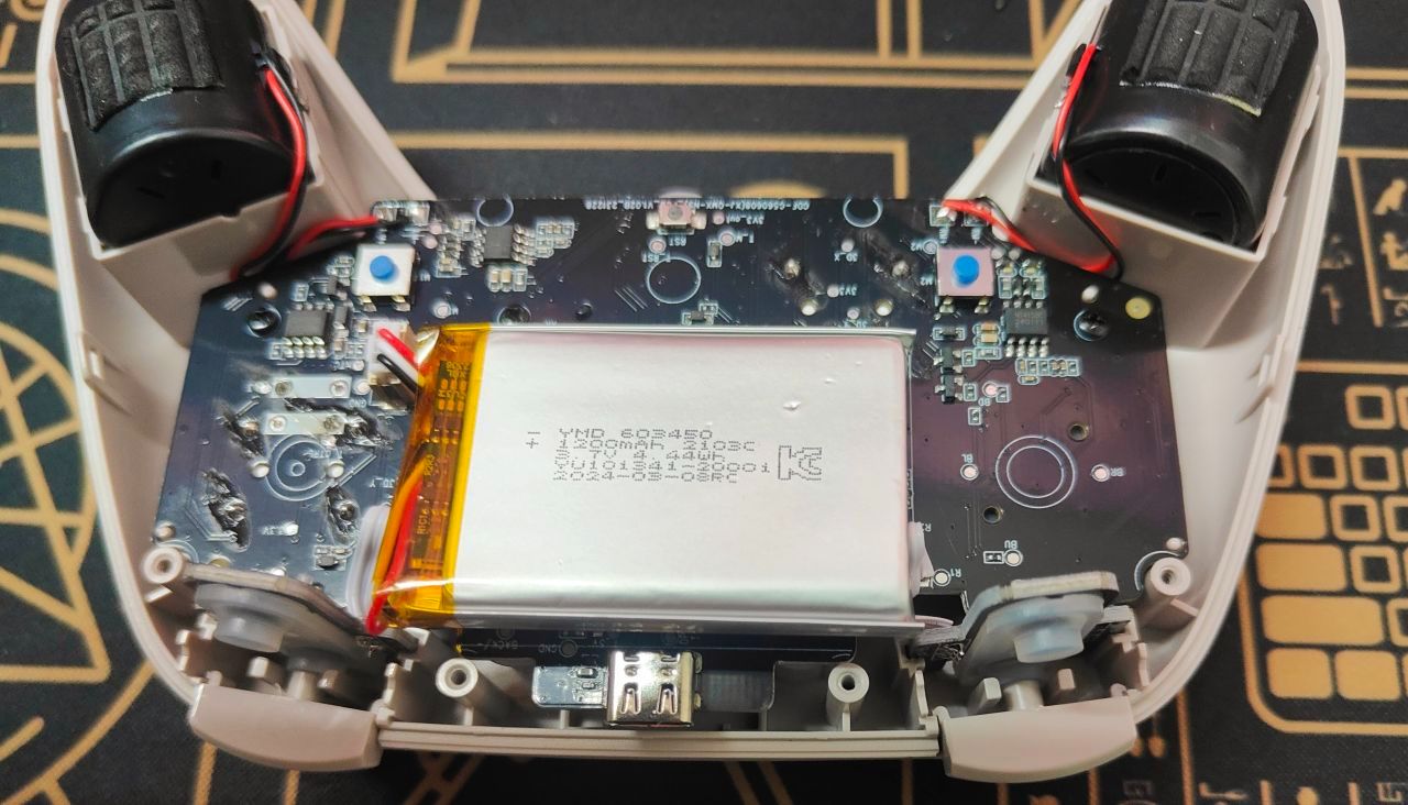 将手柄简单拆解,内部的用料还是非常足的。两个马达通过密封焊接固定;摇杆是小鸡自家定制的霍尔摇杆,使用寿命500万次,和Switch pro的alps摇杆相比更不容易漂移。