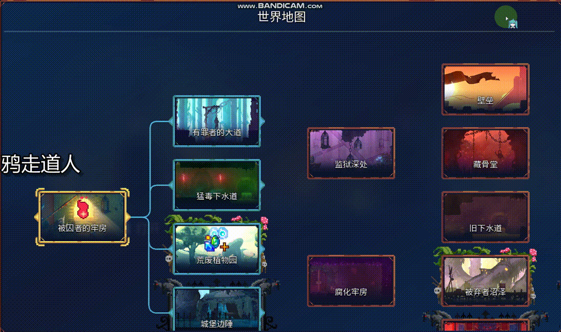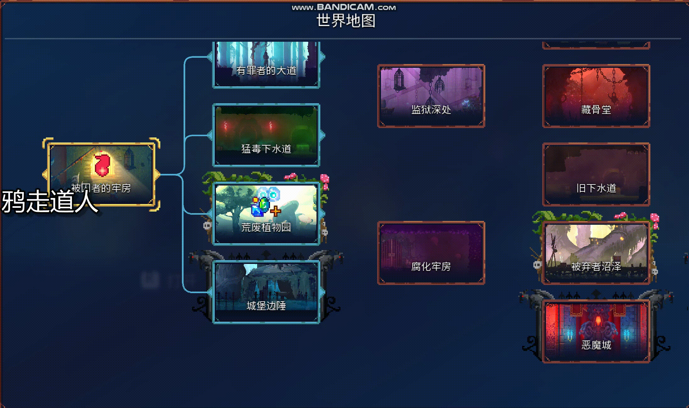 ①被囚者的牢房→猛毒下水道→腐化牢房