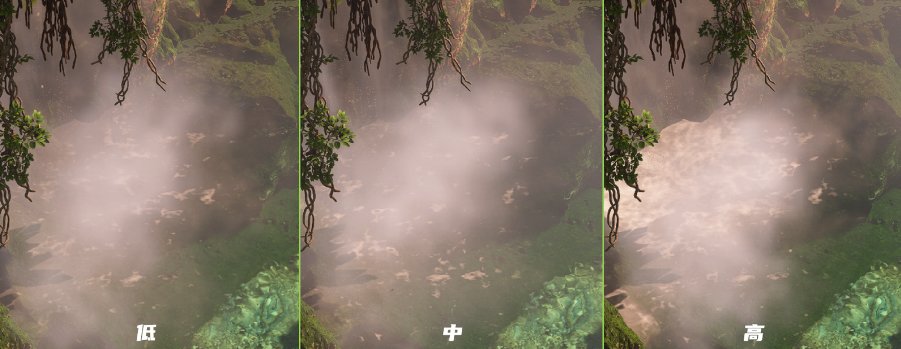 由于该选项从中到高有着极大的性能消耗,建议大部分玩家调到中画质即可。又因为高到极高没有明显性能损失,所以配置较高的玩家想要更好的画面可直接一步到位到极高,无需调成高。