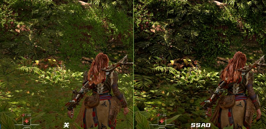 关到开的区别是非常明显的,相当于阴影效果的史诗级升级。不在于某一个区块,而是整个画幅都会受到影响,建议开启SSAO。