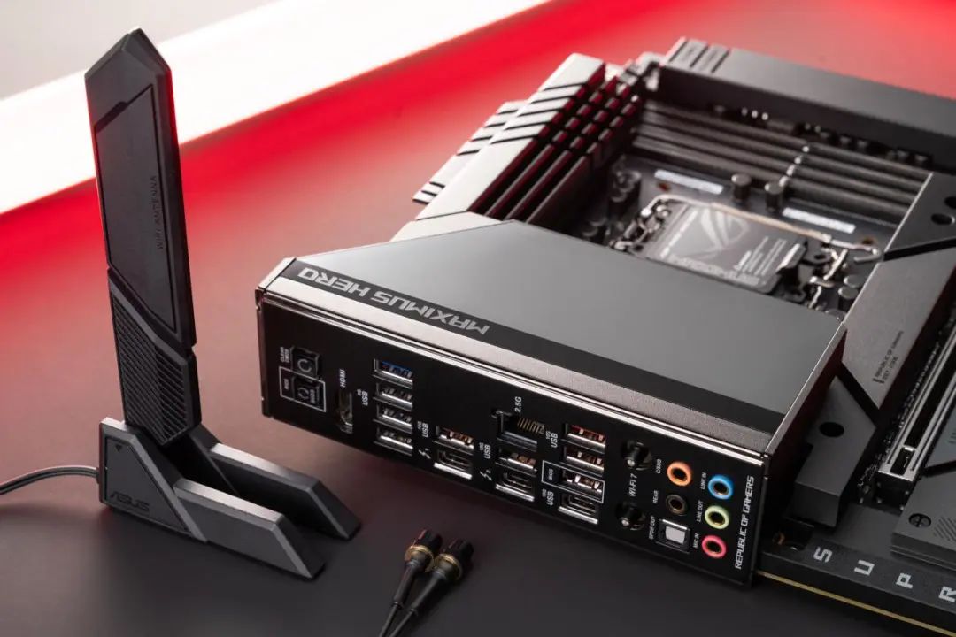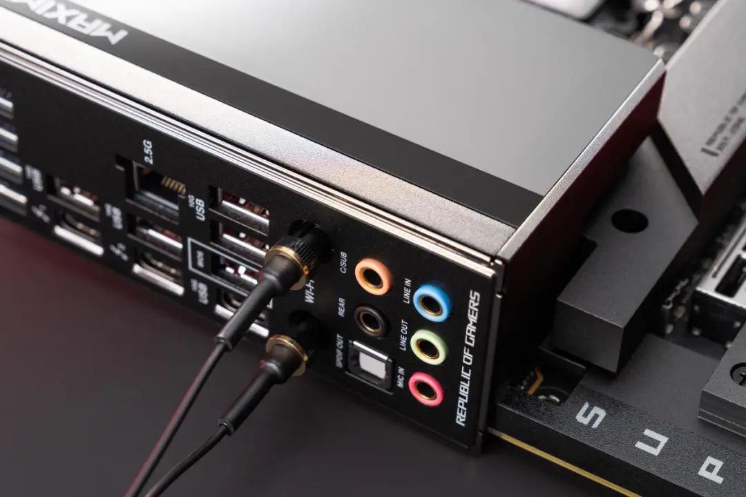 主板后置I/O面板部分,则提供了双雷电4接口,传输带宽高达40Gbps。同时还提供了2.5G有线网卡和WIFI7无线网卡,满足玩家各种高速连接的需求。