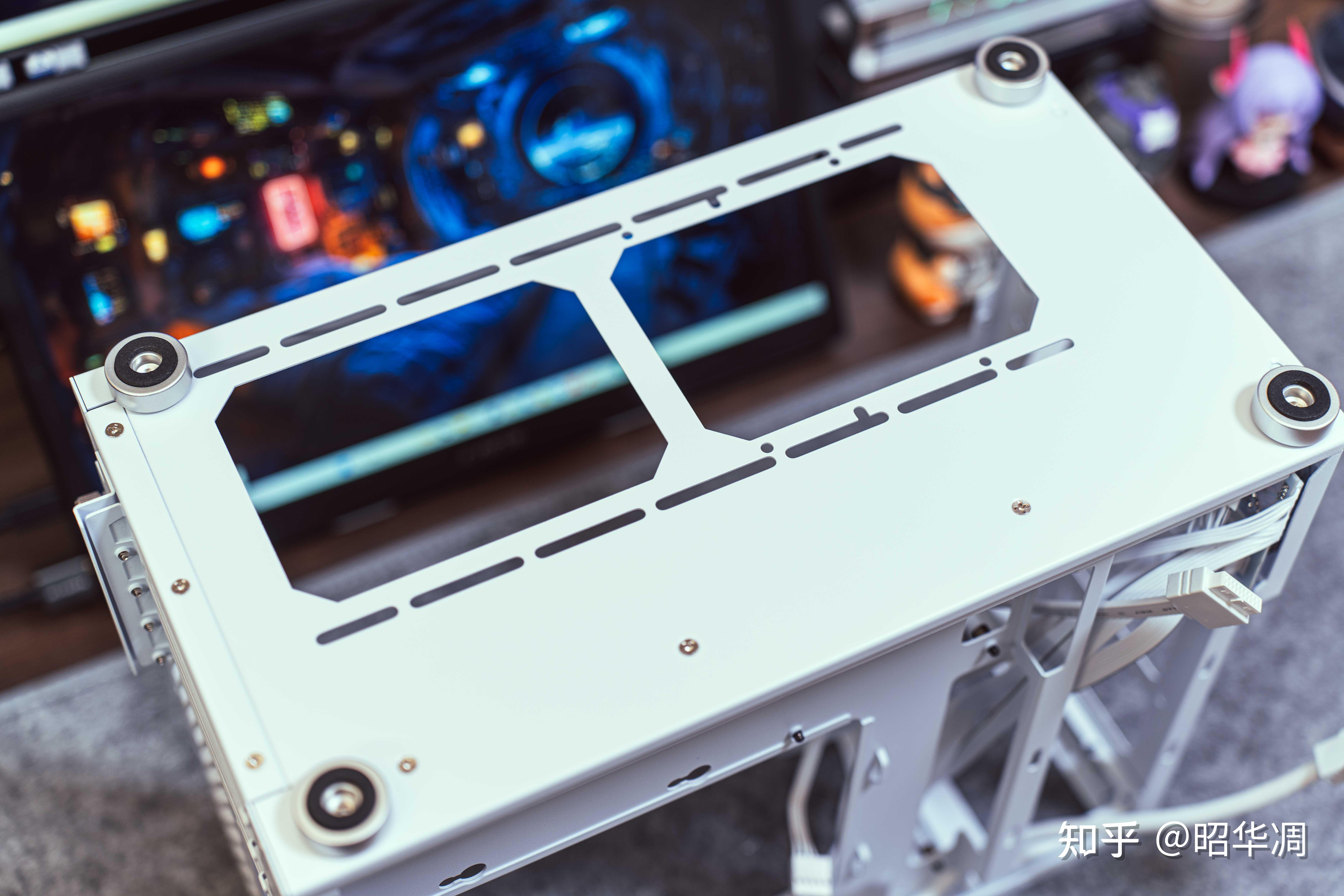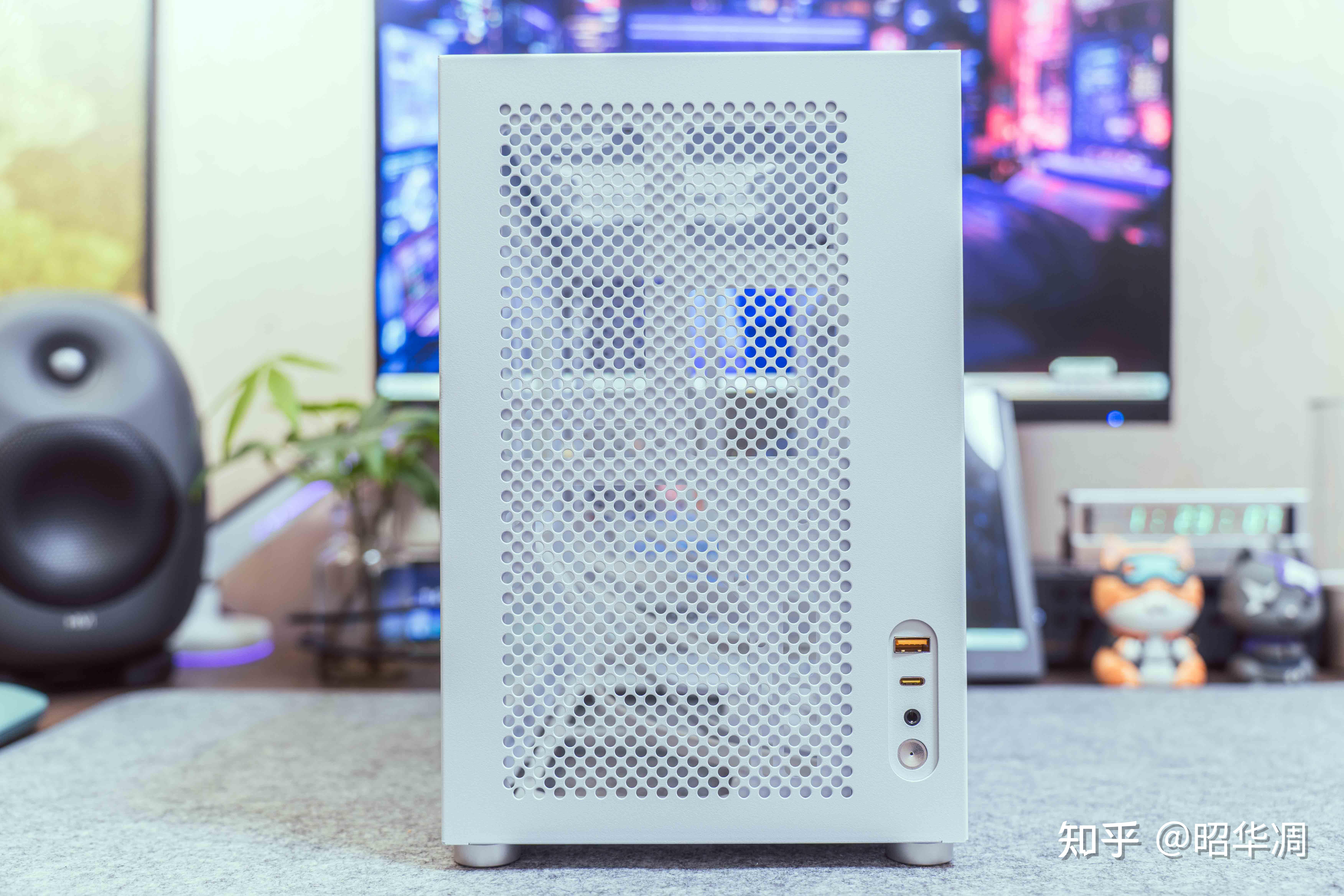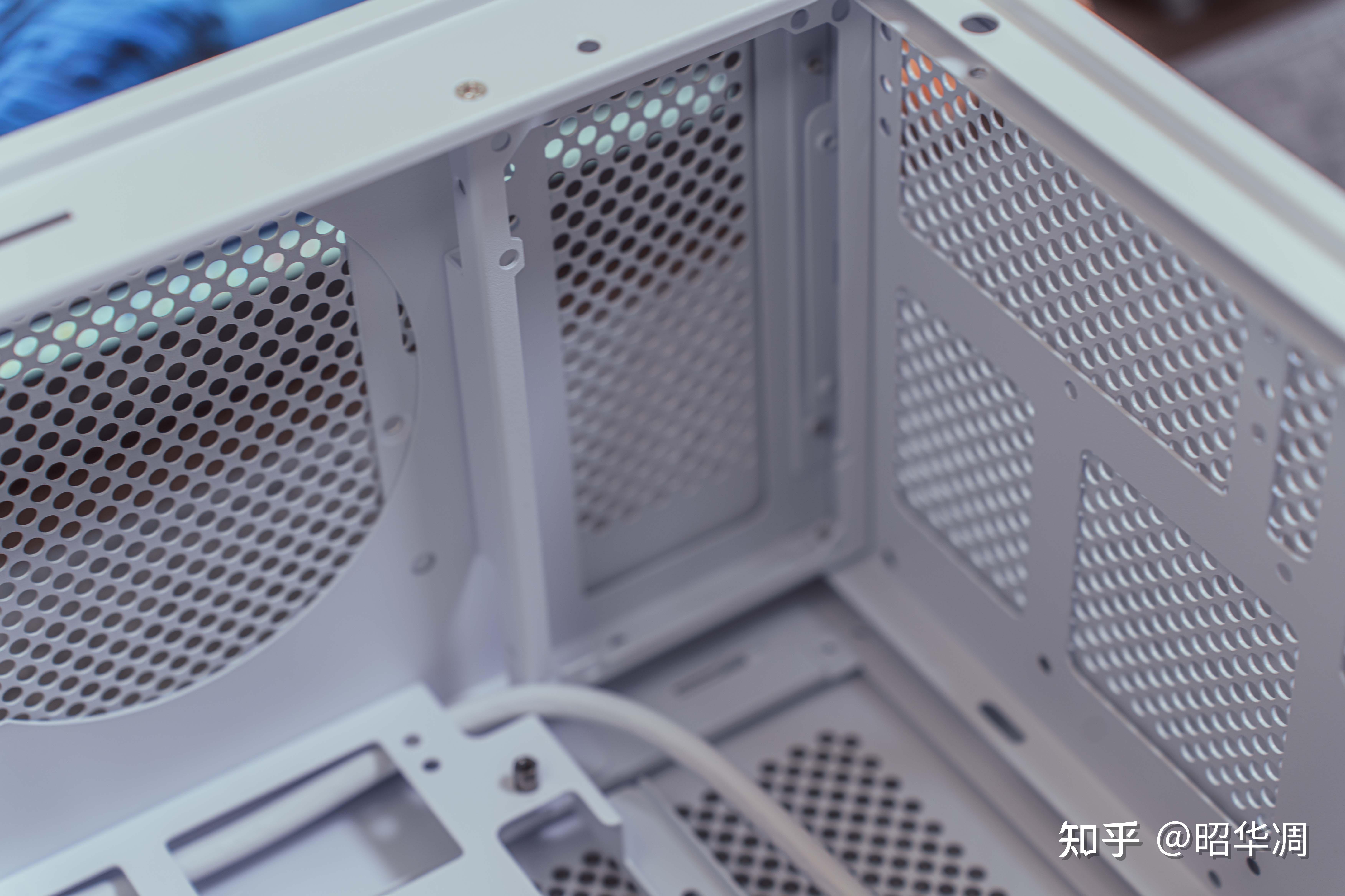 方糖机械大师 逻辑库 iF17 有黑白两种配色,机身纯白喷涂,周体 MESH 开孔,右侧打孔钢板,左侧钢化高透玻璃,侧面的冷排支架支持最大 280mm 水冷。