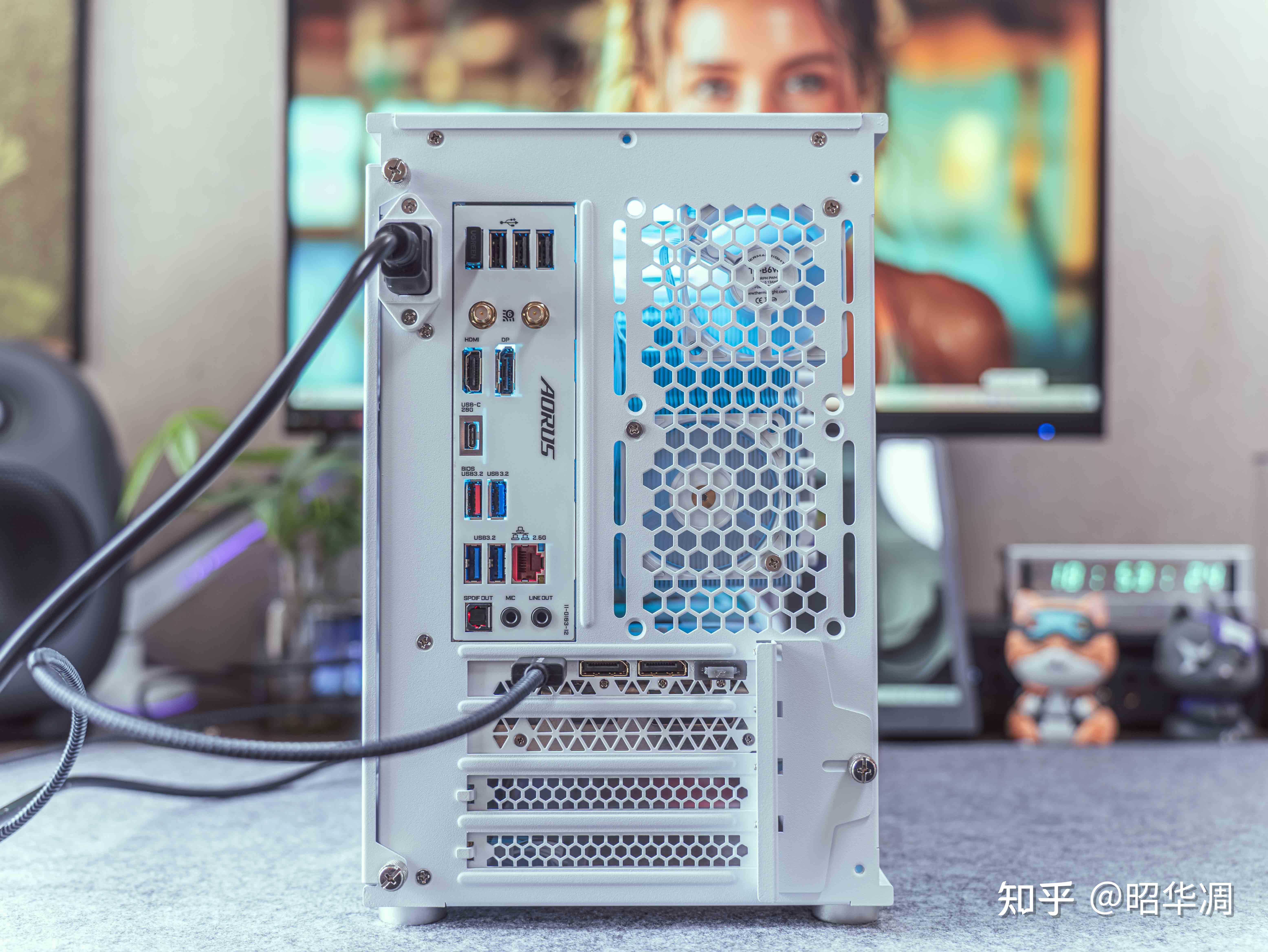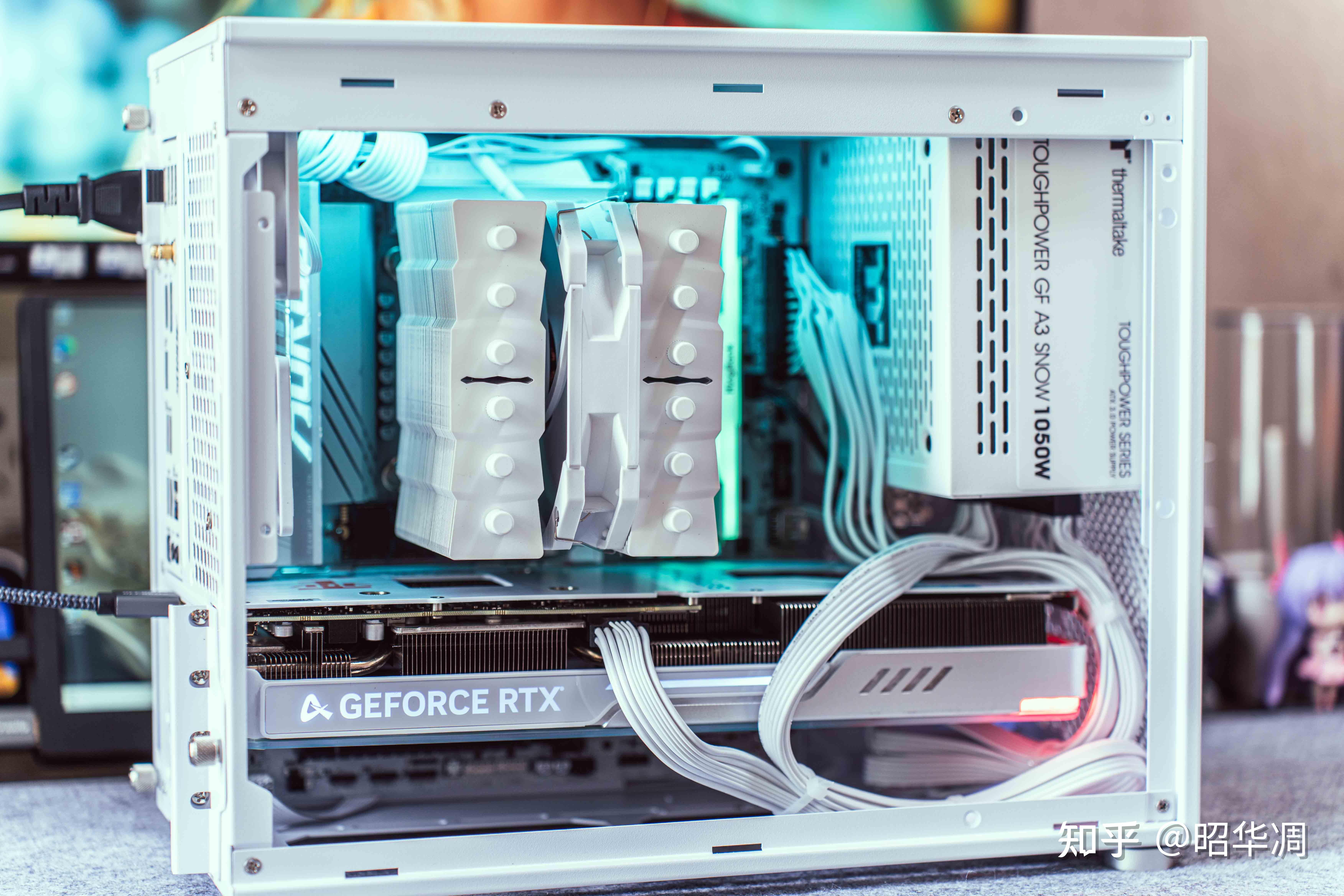 ▼双槽显卡其实更适合这种机箱,前端可以释放空间作为线材收纳区域。话说 ATX 3.0 电源的 12 VHPWR 接头真是太适合这种小机箱了,难以想象加上转接线还能怎么走。