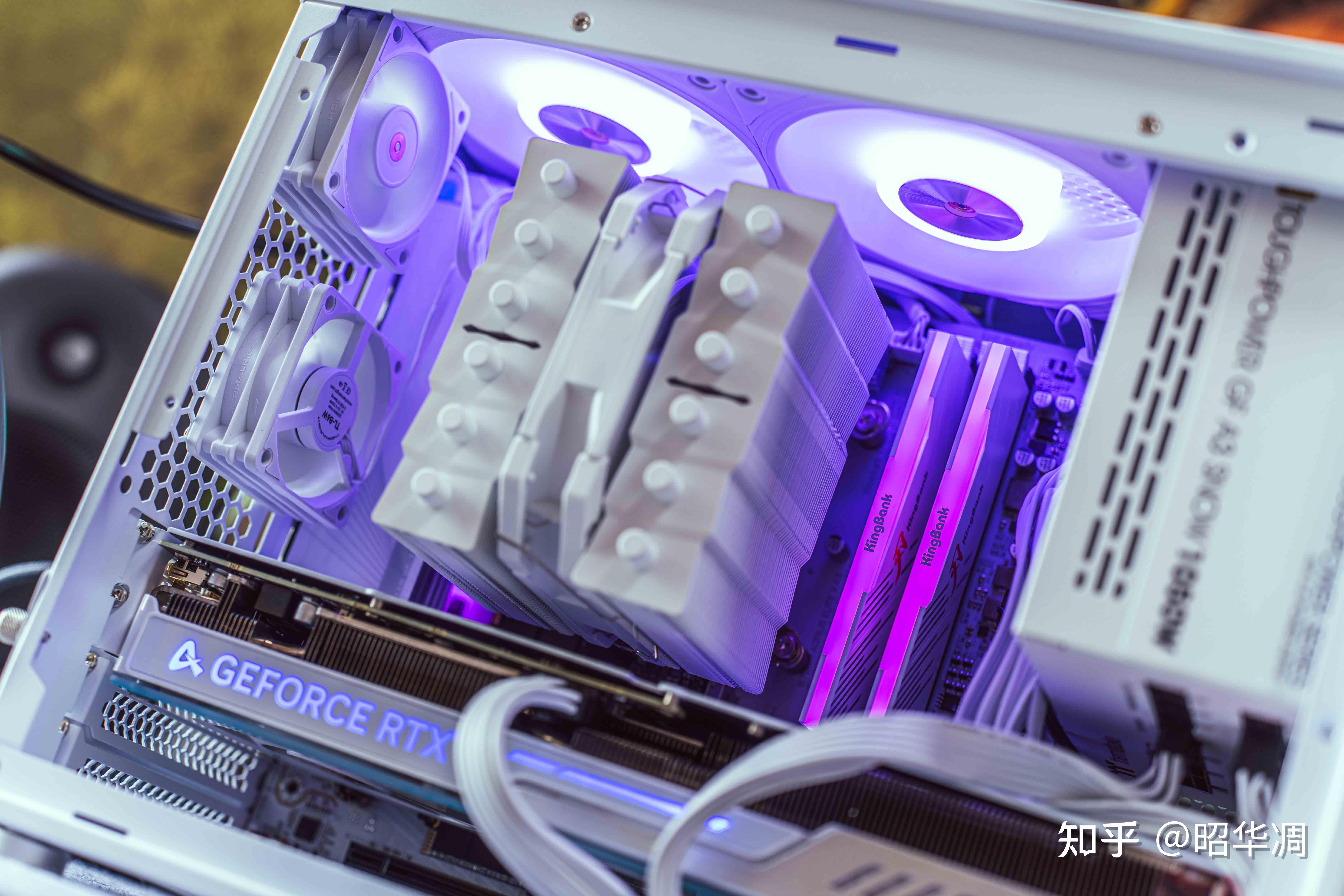 海景房机箱玩的有点多,这次装台优雅范的。整机依然是我喜欢的纯白风,机箱是方糖机械大师逻辑库 IF17,机箱纯白优雅的风格别有味道,小巧适中的体积,尤为适合桌面摆放。配置方面,CPU 是Intel 酷睿 i7-14700KF,主板是技嘉新出的冰雕X B760M AORUS ELITE X AX,纯白 PCB 颜值拉满、14+1+1 相强化供电,加上技嘉独特的“高带宽低延时”黑科技,搭配 I5 以上级别的处理器都轻轻松松。内存是金百达白刃灯条 24GB * 2,海力士 M-DIE 颗粒加持,既保证优秀的超频性能,又有容量优势,而且金百达的条子性价比 一 流;固态则是宏碁掠夺者 GM7000 2TB,这也是我经常推荐的型号, 表现完全达到当前 PCle 4.0 固态硬盘的 一 线水准;电源是TT 钢影 Toughpower GF A3,原生 PCIe5.0 + ATX3.0 + 80PLUS 金牌认证,更适合 40 系显卡;散热则是利民的 WHITE 银魂 SS135,市面少有的 六 热管 135mm 高度风冷。