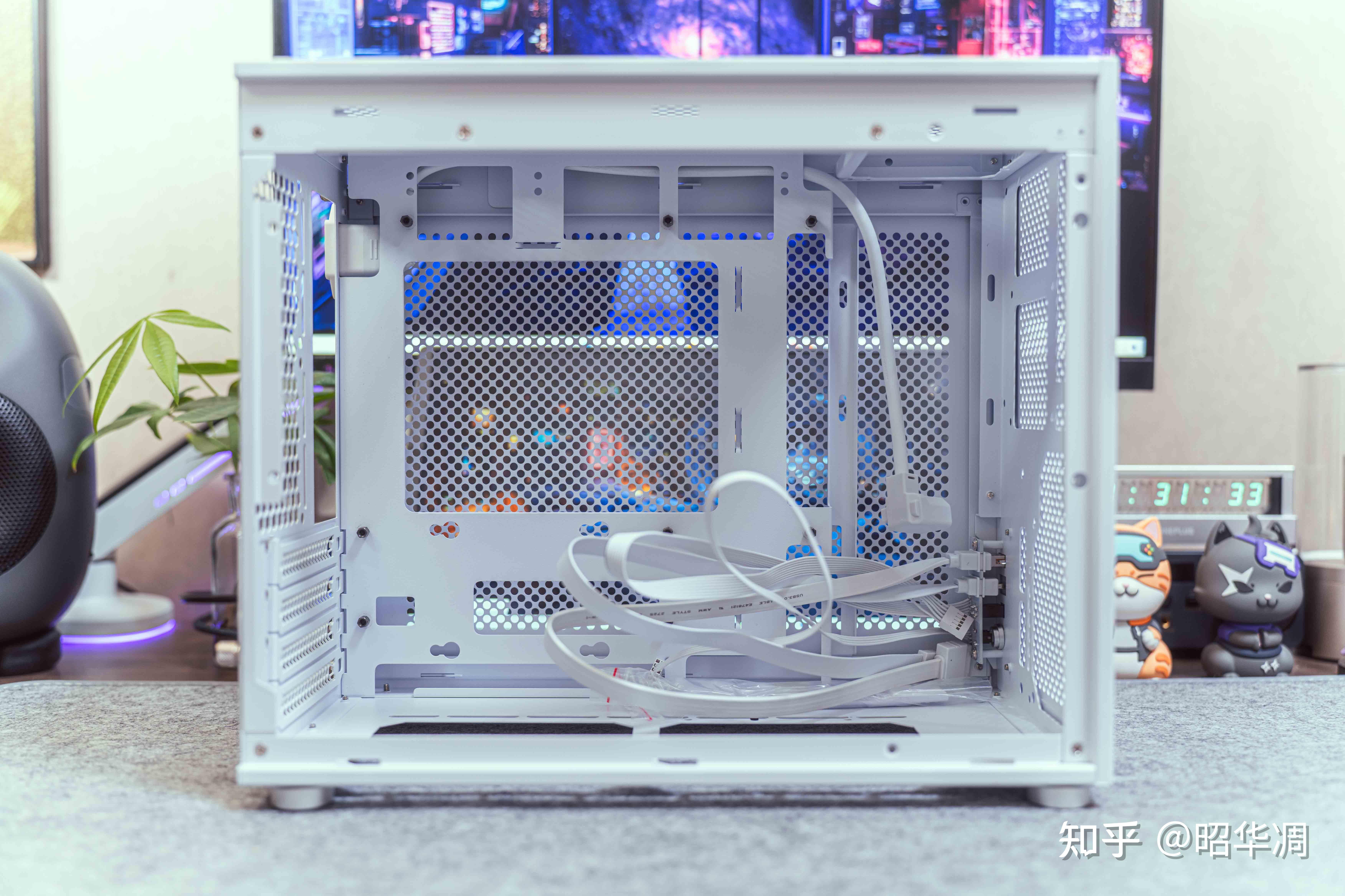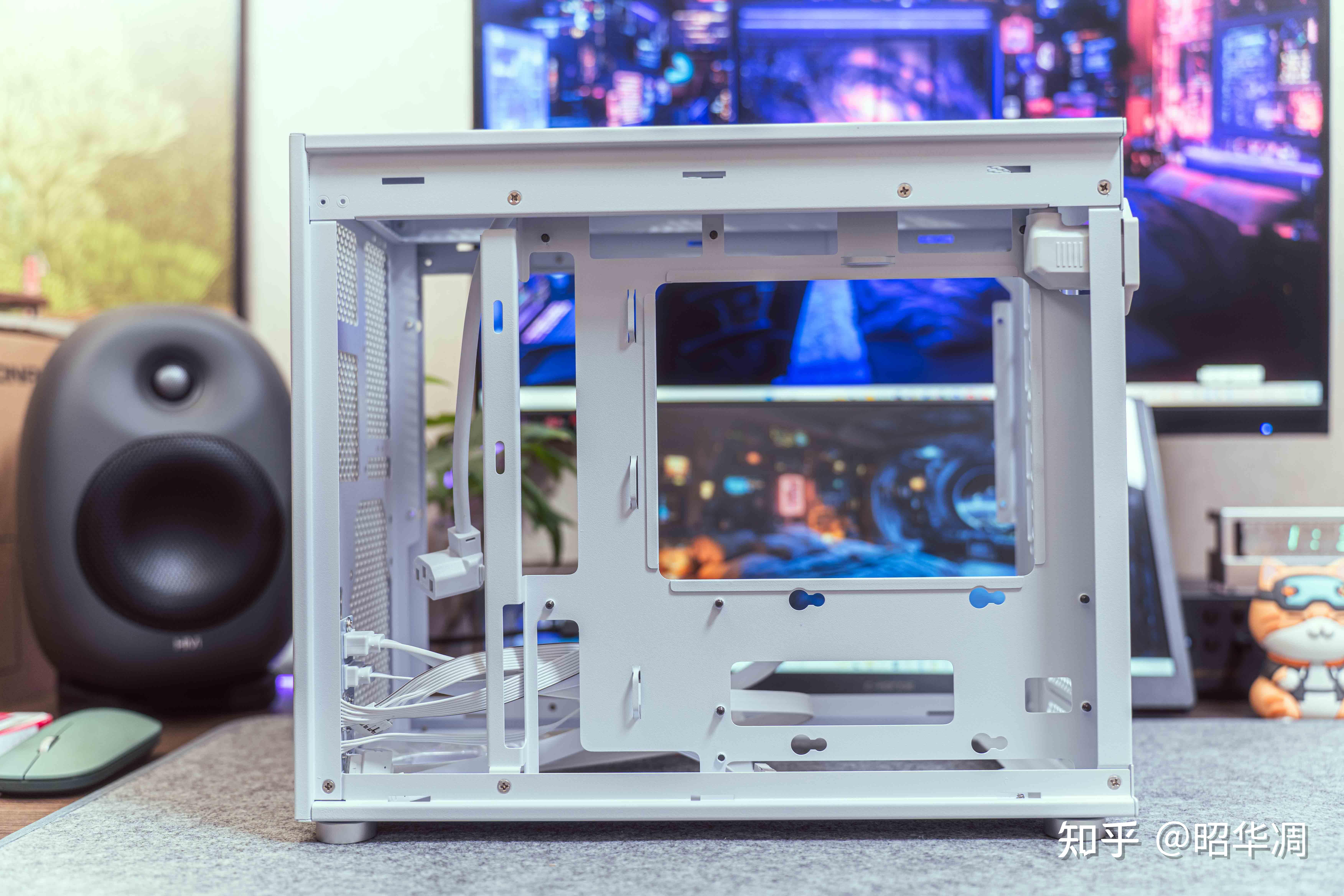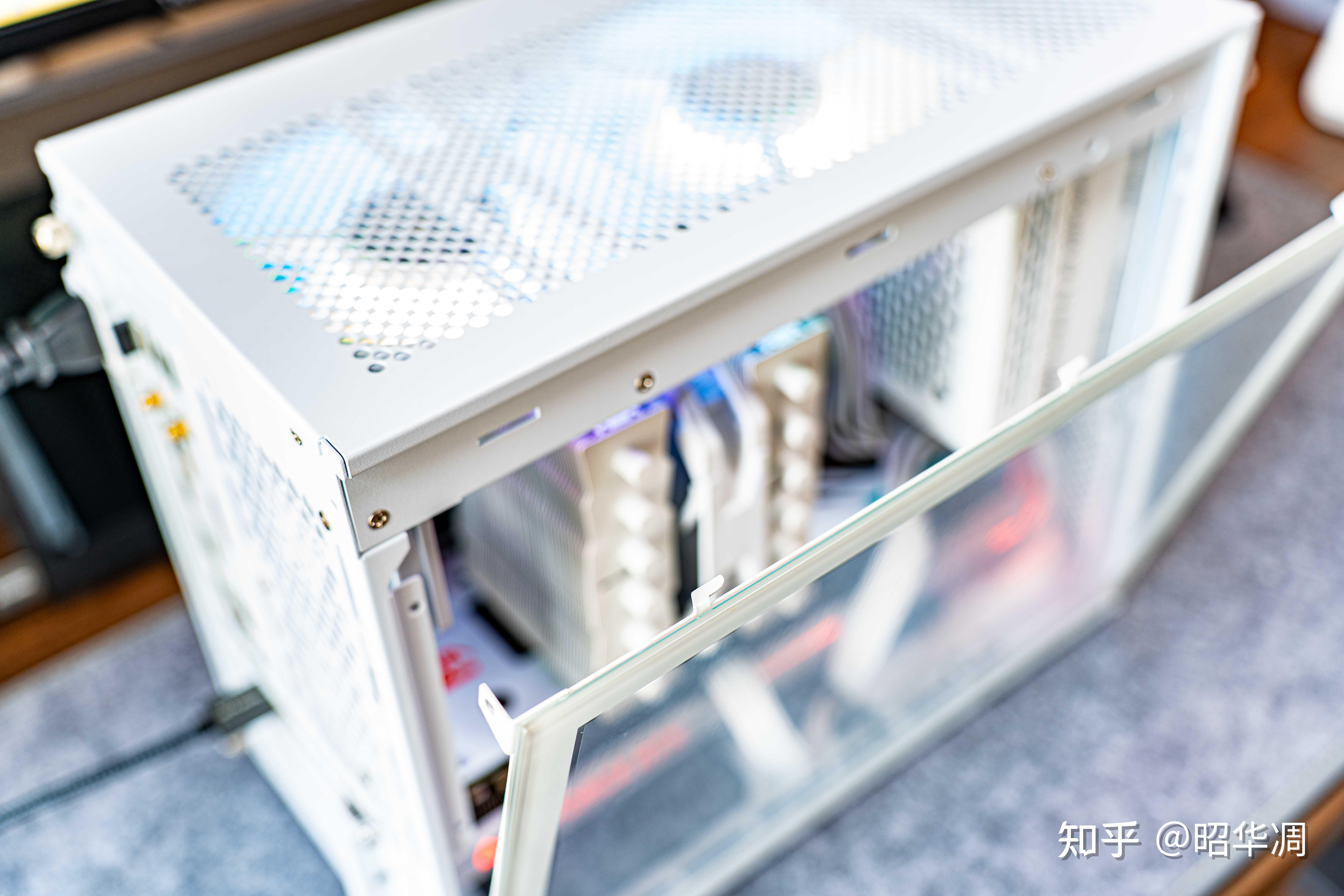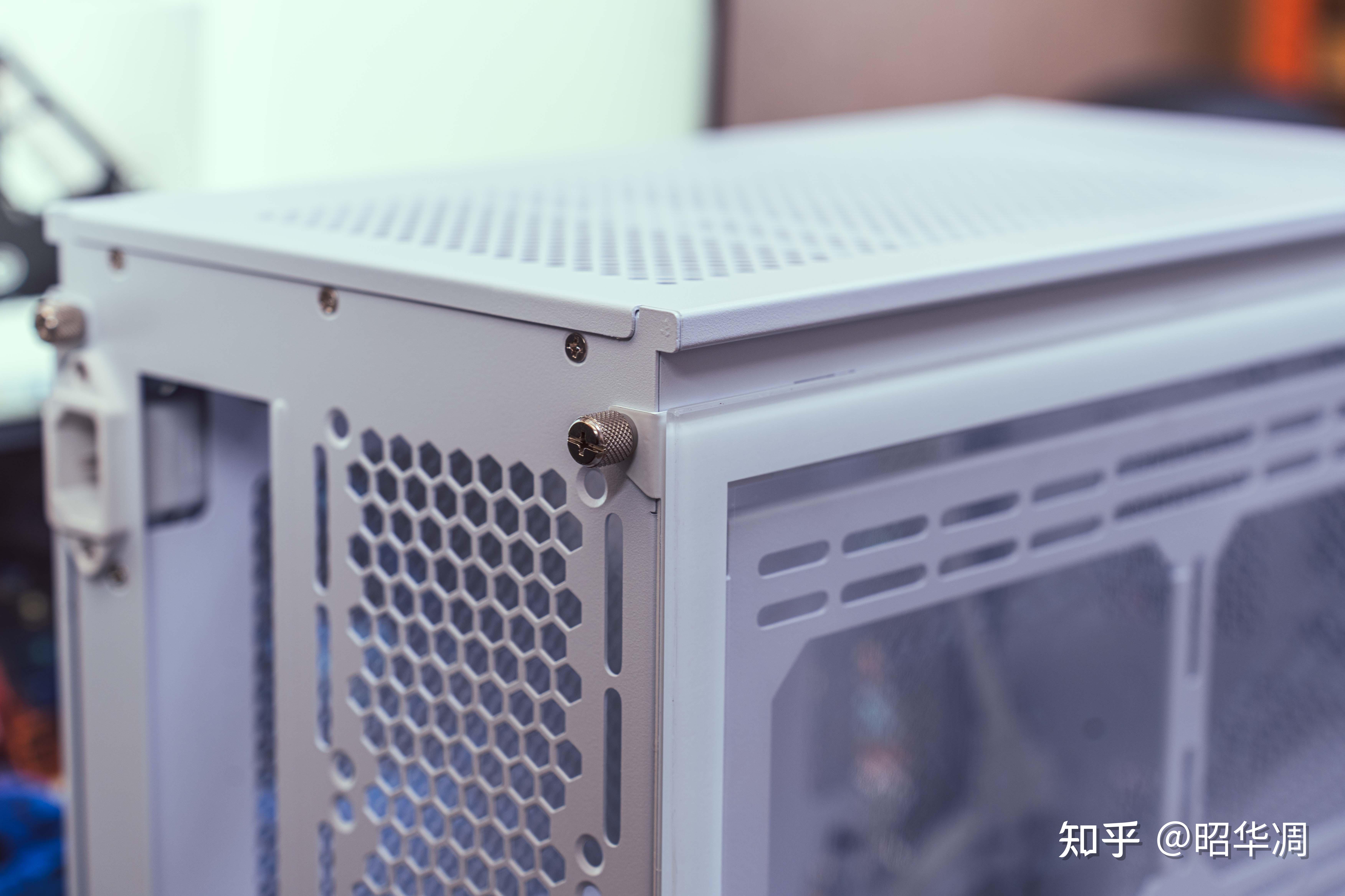 ▼左侧为高透钢化玻璃,主打个光影拉满。不过这箱子本身质感到位,无需点亮灯效也有不错的氛围感。左右侧板采用手拧螺丝进行固定,也能通过调换侧板控制灯效溢出,设计简单但实用。