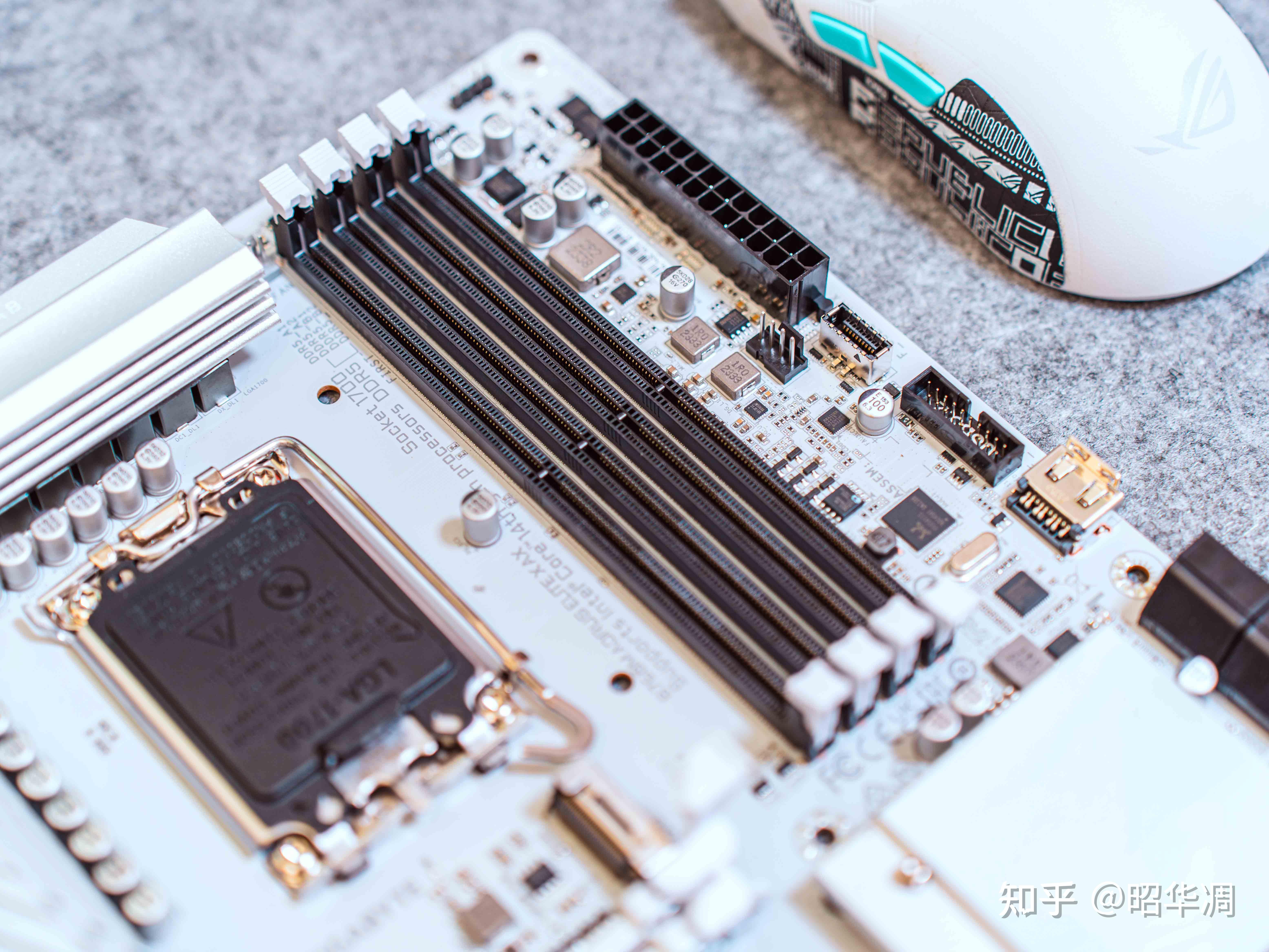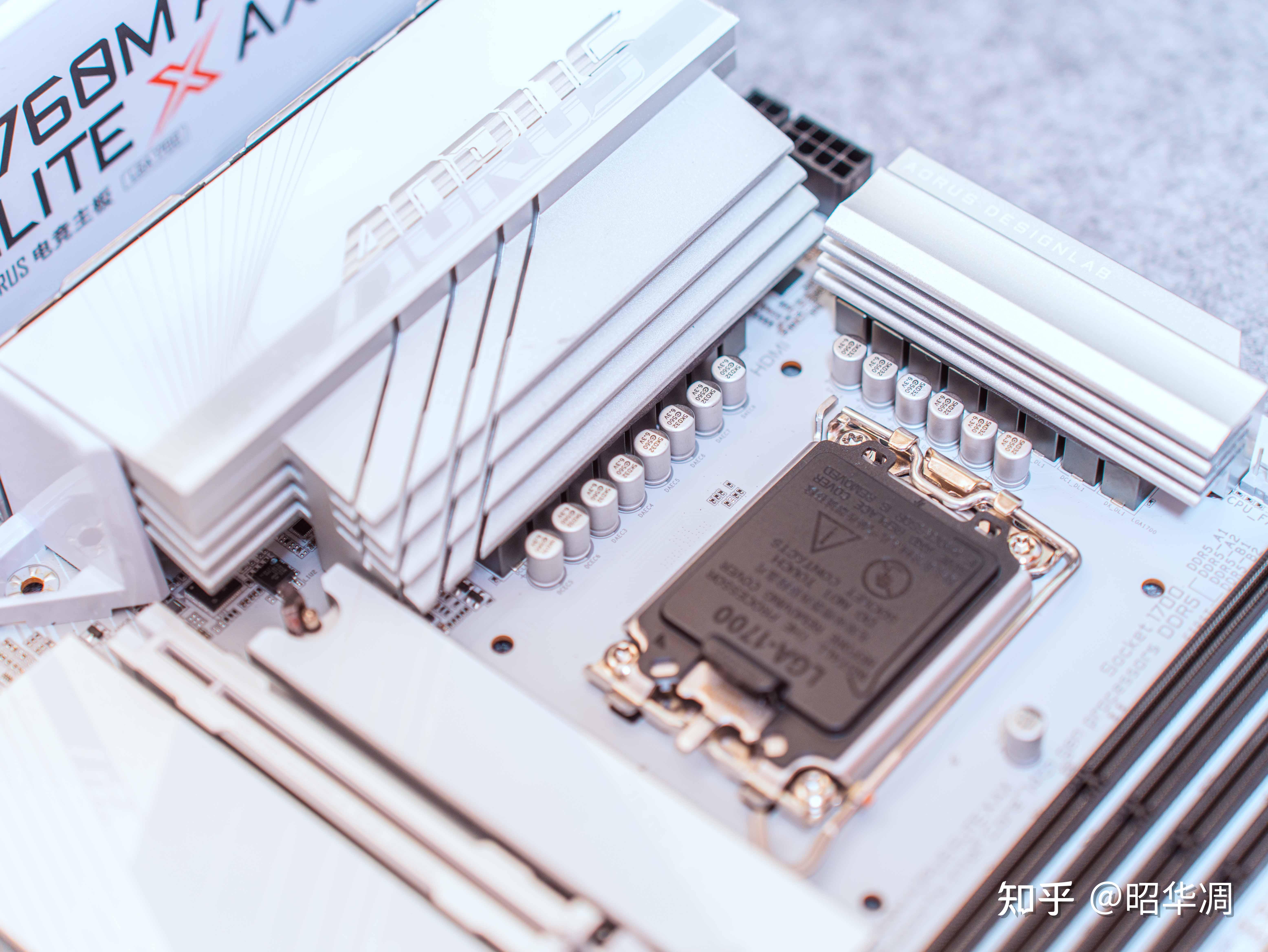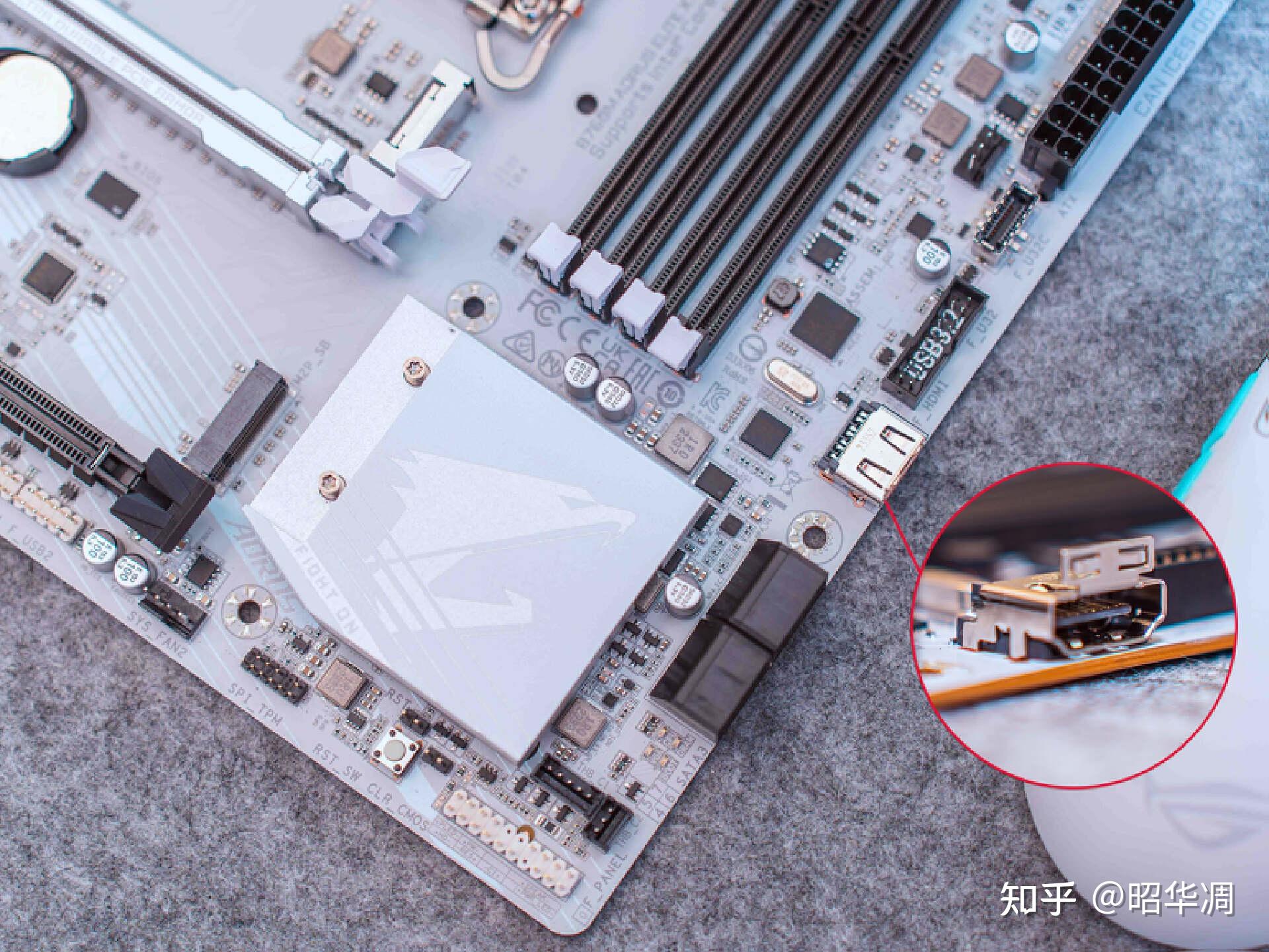 ▼冰雕是技嘉旗下的高端产品线,特色是全系采用白色涂装,颜值高堆料猛。这次技嘉将这个配色下调到了 B760M 阵营,颜值方面那是没的说,纯白 PCB 底板、银白色散热装甲,镜面 + 金属拉丝的效果让人惊艳,左上角的 LOGO 通电时还会有 ARGB 效果,相当有范。