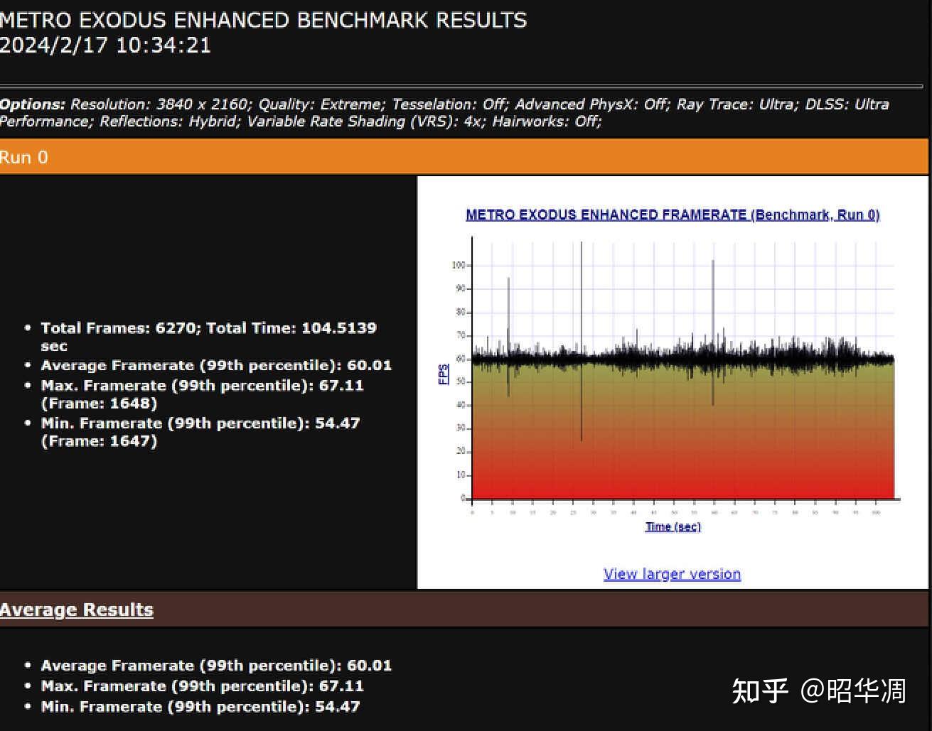 ▼地铁.离去, 4K分辨率 / 顶级画质 / DLSS 性能,平均帧率 60FPS