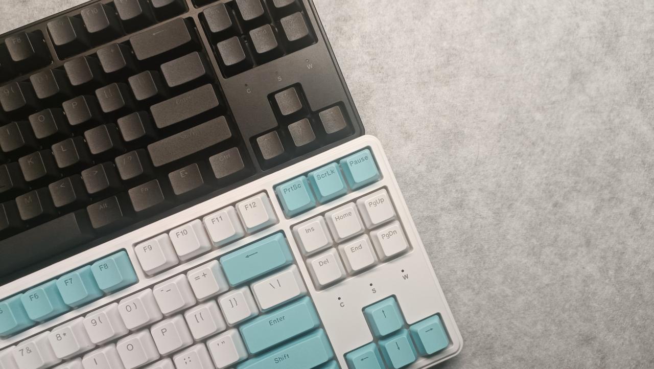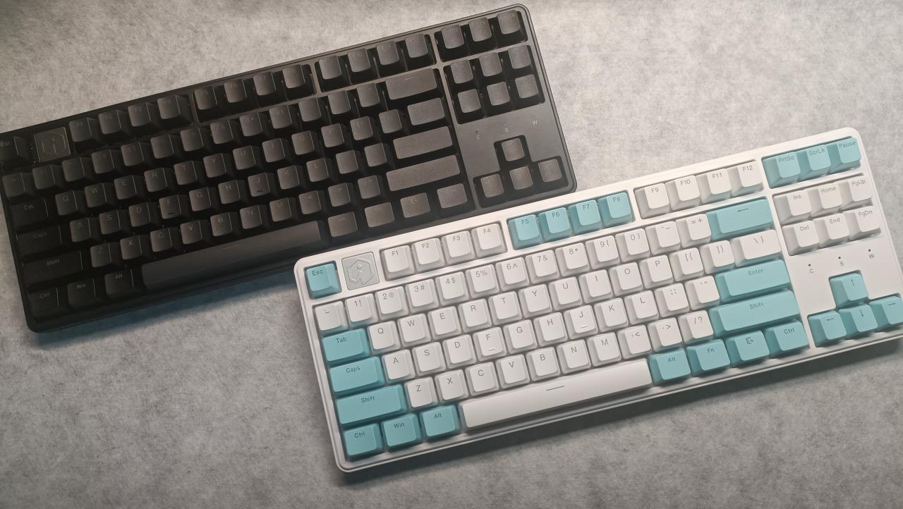 首先在外观方面两款键盘几乎没什么区别,采用了相同的模具,配列为80%去掉数字区的TKL配列,87键,除了配色外其余几乎一模一样。