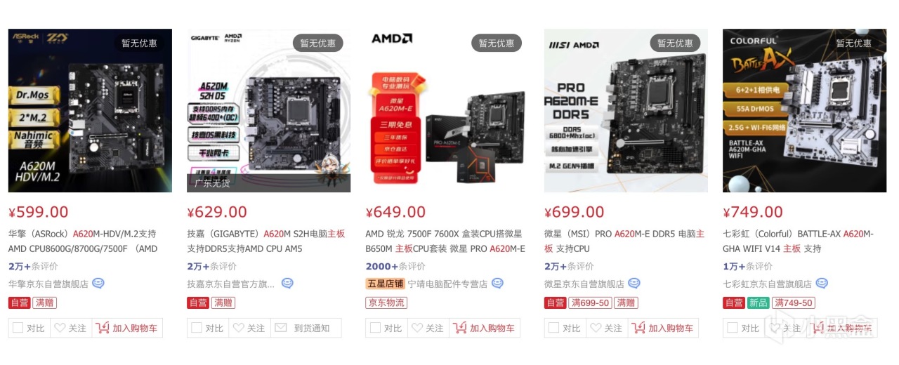 如果是换成用7500F处理器,在京东上选择搭配A620最便宜的主板也要599元,那就是1179+599=1778元,这个也是单独购买的价格。在拼多多上选择板U捆绑的活动价基本上就没有低于1500元,就算是可以叠加优惠券后也基本上不可能低于14xx元的范围。