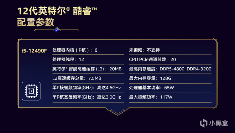intel Core i5 12490F处理器拥有6核心12线程,性能核最高频率4.6 GHz,20MB智能高速缓存,可以说同价位段的处理器中目前也就它是可以做到兼容DDR4和DDR5内存的。