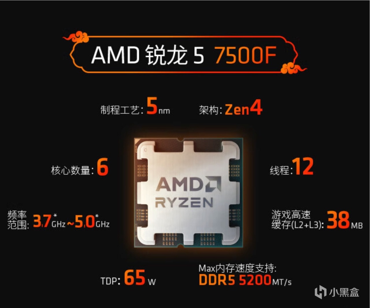 AMD R5 7500F处理器也是一样拥有6核心12线程,性能核最高频率5.0 GHz,38MB智能高速缓存,但是仅支持DDR5内存就意味用它搭配主板的装机成本不便宜。