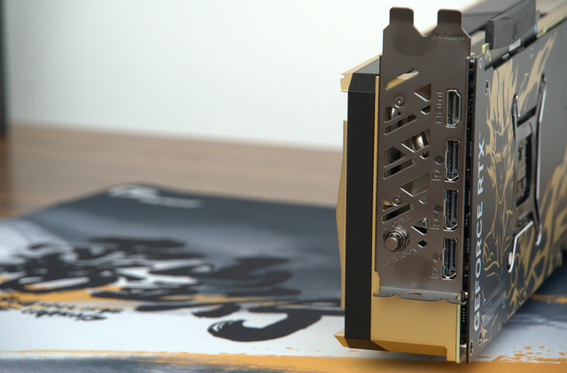 ▲显卡背板上同样是闻人翊悬的金色水墨风画面,这个姿势是闻人翊悬解除封印,使出全力之前的pose,不仅炫酷,还暗示了这款显卡拥有十分能打的游戏性能。