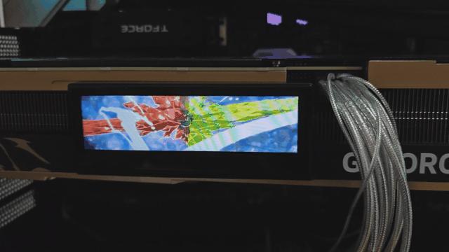 ▲顶部则是七彩虹火神系列显卡最具代表性的LCD显示屏,分辨率为800*216px,显示画面十分细腻,而且采用磁吸式分体设计,无论显卡横装、竖装,屏幕内容总在你面前,另外,本显卡采用了标准的12V-2x6接口,供电安全可以得到充分保障。