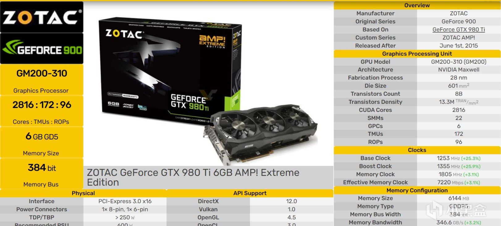 GTX 980Ti顶级非公的目标在游戏性能上超过等级更高的Titan X。索泰这张出厂就把能超频的都给超频了。默频超频25.3%,Boots频率25.9%,显存频率也超了一点。