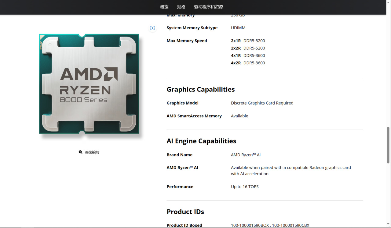 看到这里我以为这就是性价比王中王的CPU了,但是仔细扒拉了一下AMD官网的参数,我又觉得还不如老老实实上8700G。