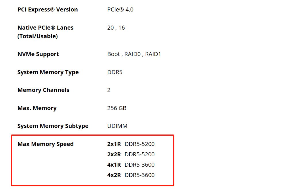 而且值得注意的是,虽然是新款的8000系,但是8700F&8400F把PCIe 5.0 技术的支持也被阉割了,最大只能支持到 PCIe 4.0。这个操作我是非常不理解,一个2024年新出的CPU不支持PCIe5.0?就像是我的iPhone15只给了USB2.0协议的Type-C接口一样让人不解。