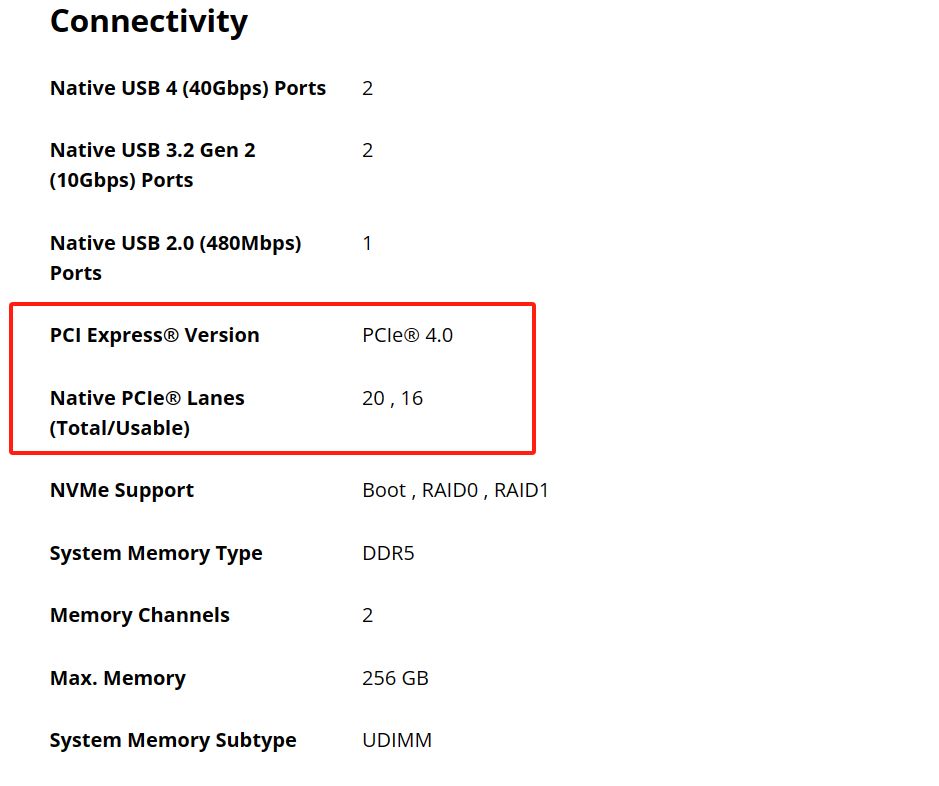 根据我查到的资料,8700F&8400F两款处理器仅采用 Zen 4 架构,CCD 面积 178mm²,PCIe 4.0 通道总数量 20 条(16 条可用),证明其均基于 Phoenix 1 芯片。所以我合理推测一下,一旦插了PCIe4.0的固态,那是不是说明显卡的PCIe通道就不能跑满了?那我显卡性能继续受限?那游戏佬岂不是很难受?本来就冲着AMD YES去的,结果CPU的价格的确是下来了,但是我显卡都还跑不满?那不如换一个7000系的,好歹它通道数更多,也依然还是千元出头的价格,又或者换牙膏厂的12600KF,CPU性能更好,PCIe通道数也更多。