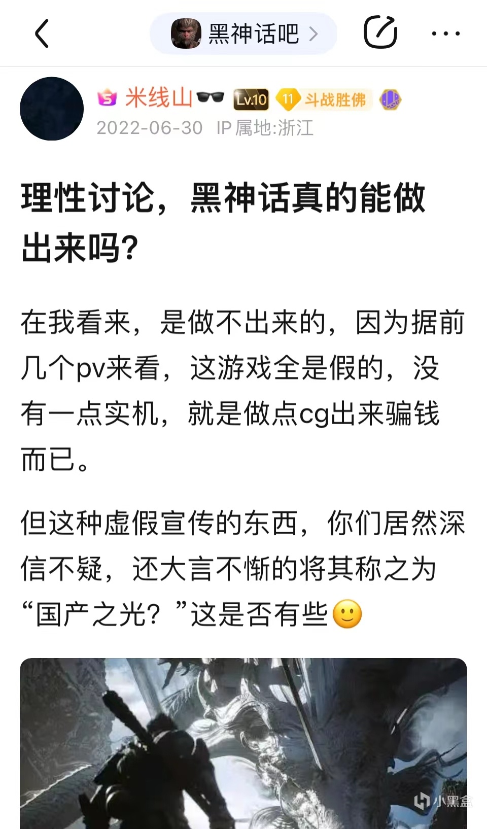 2022年6月30日,米線山首次在“黑神話吧”發帖,可以看見的是:米線山在黑神話吧所發的第一篇帖子,就是帶節奏的,並且在之後他還屢次發表類似的貼子,但那時的他還並不能掀起什麼風浪,總得來講還算得上是一位普通吧友,他甚至還加進了“黑神話吧”的q羣。想必許多人在日後看到米線山於黑神話吧q羣的發言截圖後都大喫一驚:我都進不去那個羣?米線山他竟然能進?想不到吧,人家在沒開始引戰的時候就進羣了。