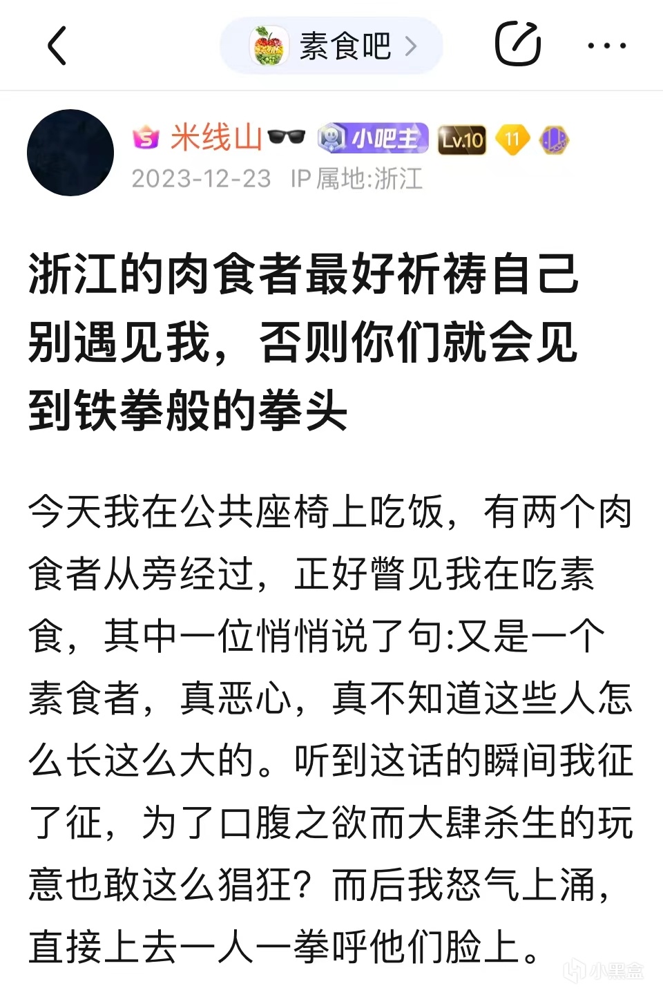 米線山在引戰初期便將自己的活動範圍定在了整個貼吧,ps5吧,v吧,反原神吧……不勝枚舉,其中他最愛去的便是素食吧與csgo吧,在這期間,他又創作出了自己發帖時的另一個經典模板“那些喫肉的最近都給我小心點,否則我會讓你們見識到什麼是沙包大的拳頭。”這個時期的米線山,雖然在發帖領域已經取得了一些初步成果,但總地來講,他還是岌岌無名,不過這樣的日子不會持續很久,真正讓米線山在貼吧聲名大噪的那個事件馬上就要來了。