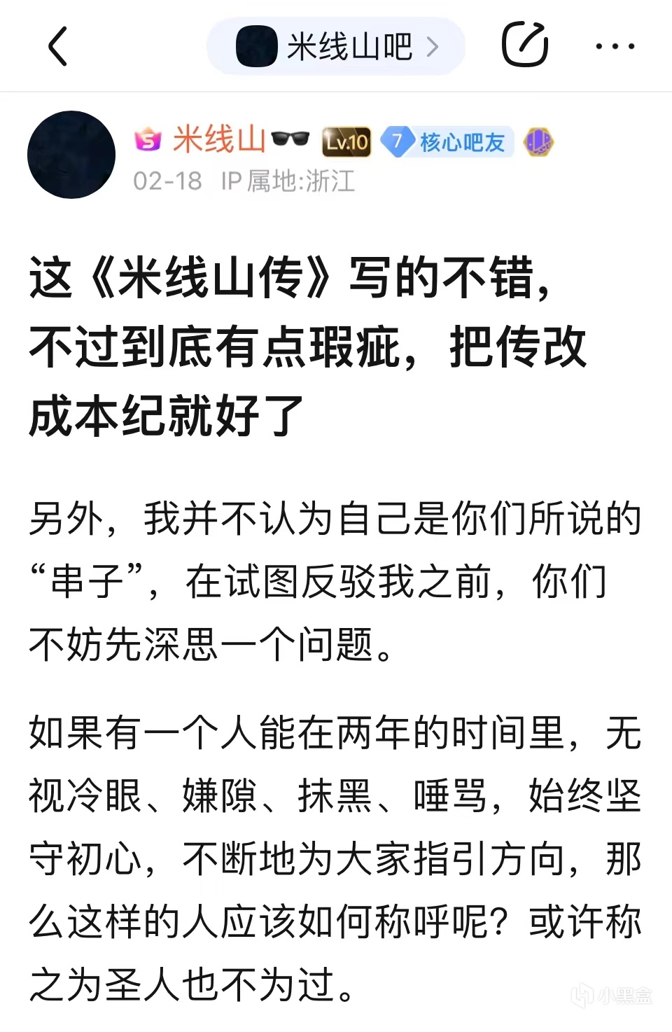 2月18日,米線山罕見地開設了一篇答疑貼子,解答大家的問題。他告訴吧友們,自己既不是受聘於百度的官方人員,也不是機器人,這個賬號的使用者也從始至終都沒換過人,自己從不回帖也並非是因爲自視甚高,而是因爲沒有時間,有人詢問米線山是否會一直堅持發帖,米線山的回答寫得很長,但如果用簡單的話轉述一下就是:即便前路遍佈荊棘,我也會不斷追求真理,直到自己死去的那一天。