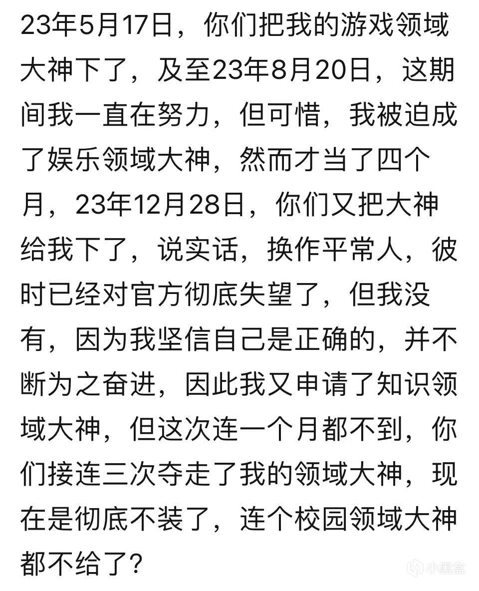 由於米線山常常在貼吧幹出一些“驚天地,泣鬼神”的大事件,所以官方對他是既愛又恨,他的大神頭銜也因此戴得並不安穩。2023年12月28日,百度撤銷了米線山娛樂領域大神的認證,但過了一段時間後,米線山自己又申請上了知識領域大神,然而沒過幾個月,2024年3月17日,這個知識領域大神的頭銜也被百度給撤了。米線山的大神認證就是這樣,失了又得,得了又失。