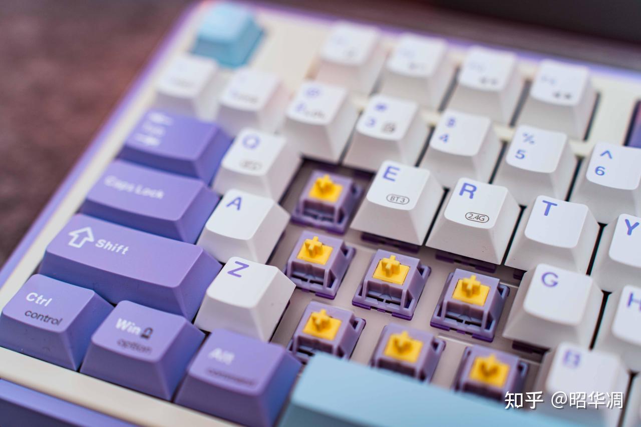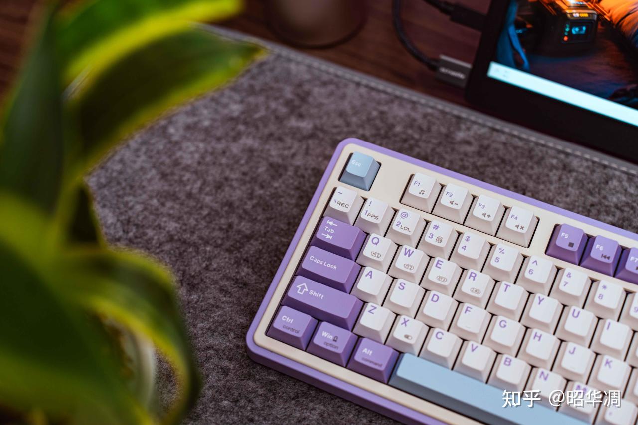 ▼作为走量号,黑爵 AK870 设计了半日闲、雾川海、墨山青、浆果园等多种配色,搭配飞鱼、礼物、美拉德、风信子、茉莉 5 种轴体,也让用户的选择面更广。我这套是白紫搭配的雾川海配色。