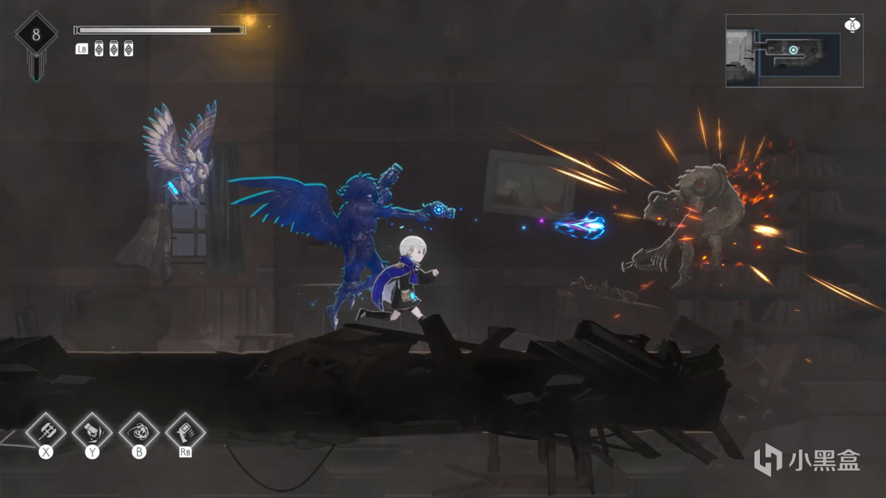 在養成內容方面,本作的遺物位置×遺物和血量增加基本和前作一致,加了的是4個裝備位(和對應的商店系統),這些比較常規,不過“背後靈”的人工生命體人均有3個技能,可以解鎖和升級,這個就比較有意思了,比如負責X位無CD攻擊的諾拉便可以提供快速的劍擊、中速的鐮刀和慢速的大錘三種方式。