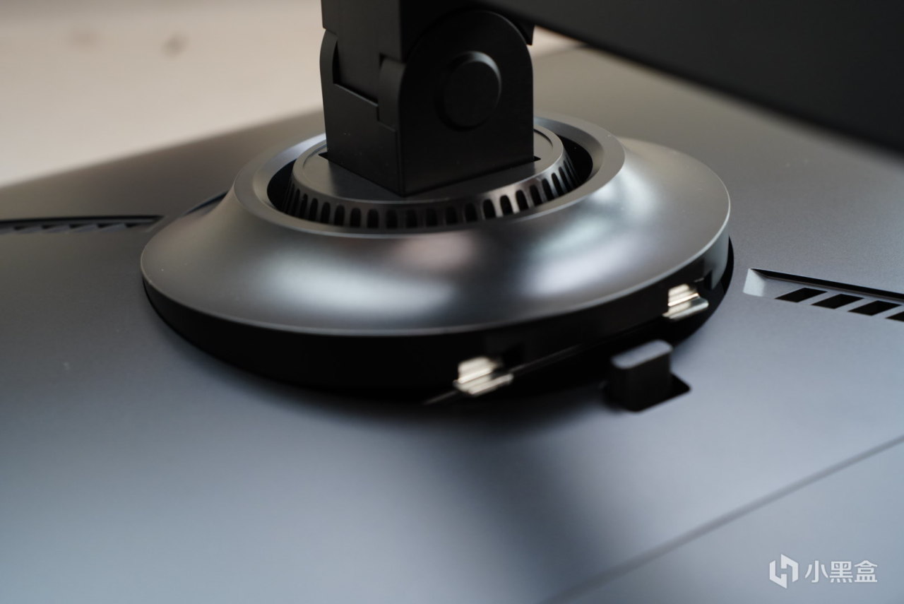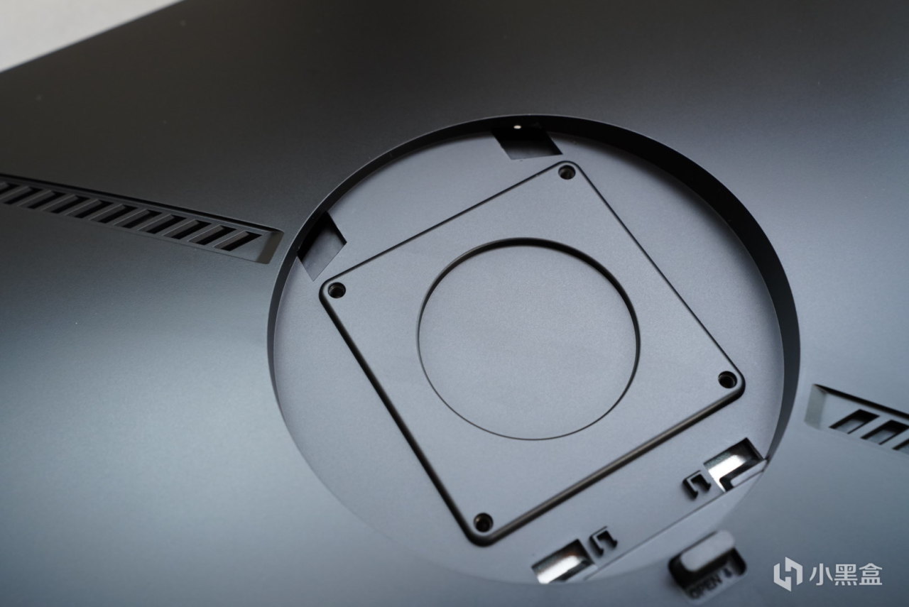 如果想把支架拆卸很簡單,下方有一個按鈕向裏面印刷着open。將按鈕按下即可將之前的顯示器支架拆除。