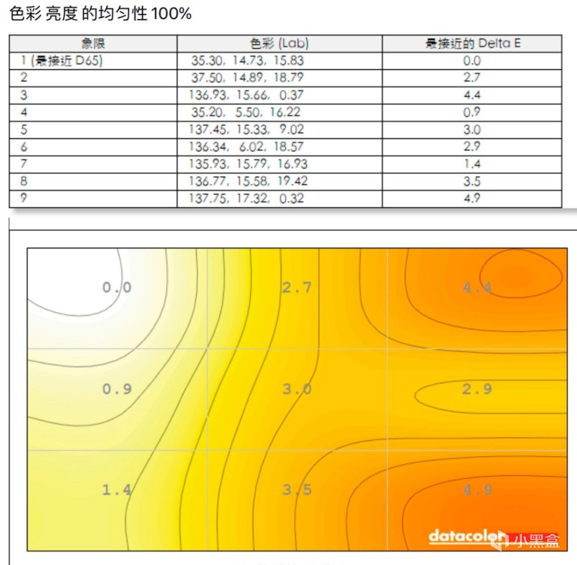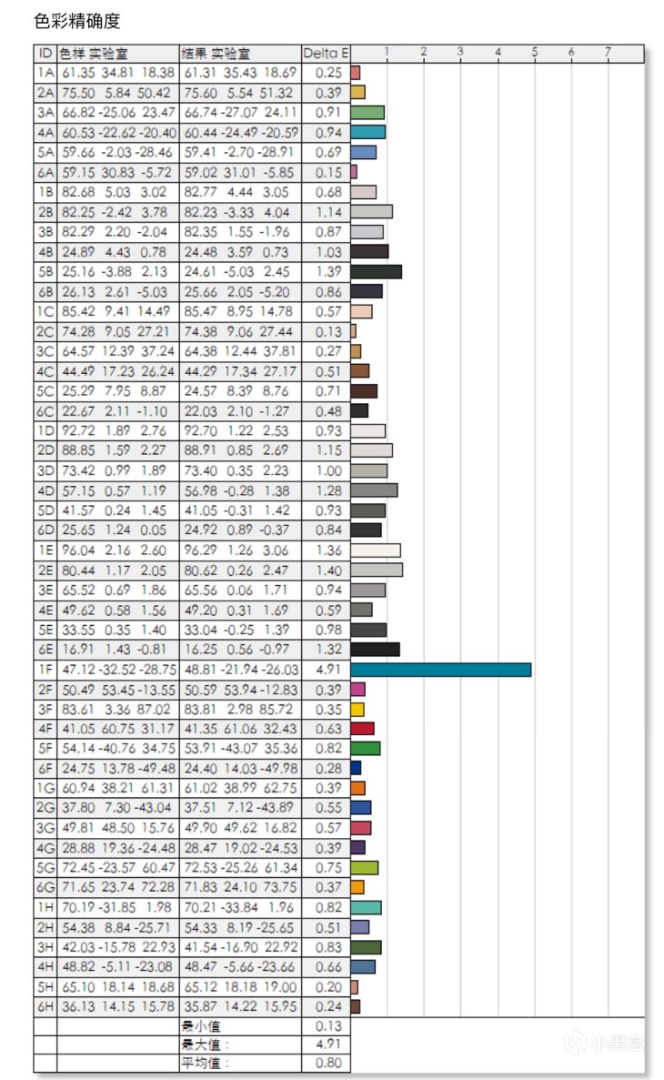 這款顯示器在標準模式下色準平均值爲:0.8非常優秀。一般平均△E≤2就算是設計專業顯示器的入門標準了。