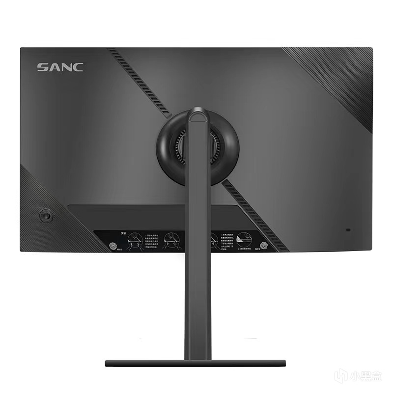 顯示器背面也進行了一些設計,一個大大的sanc他家的logo,以及一些斜紋的處理,讓顯示器背面也增添了一些色彩。正面其實就是簡簡單單的一些設計,比如說增加一個logo啊,增加一個產品的型號啊這種的。