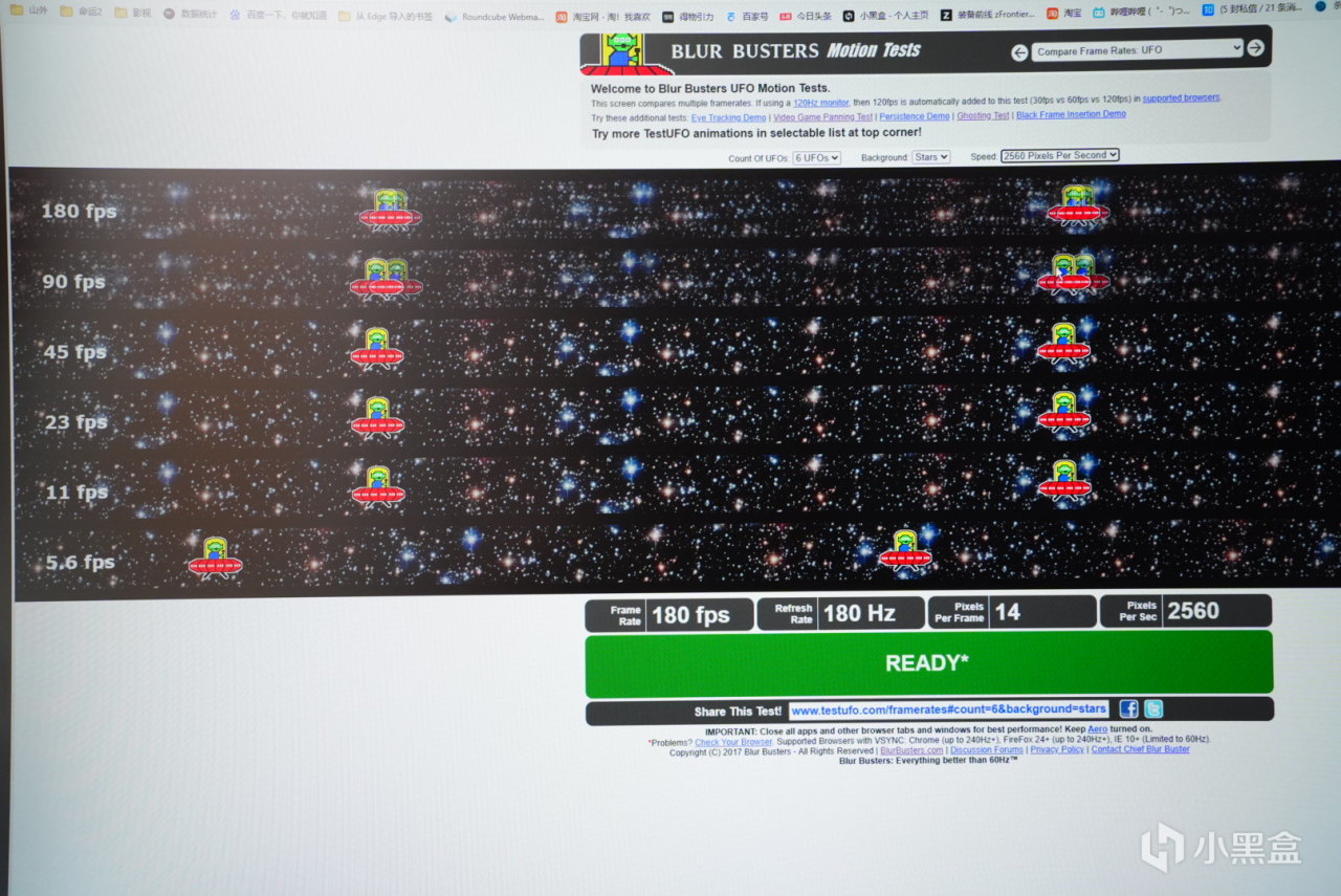這裏其實可以更直觀的看一下,通過網頁的ufo可以發現低幀率和高幀率的區別,在速度極快的時候高幀率的拖影效果是明顯小於低幀率的。