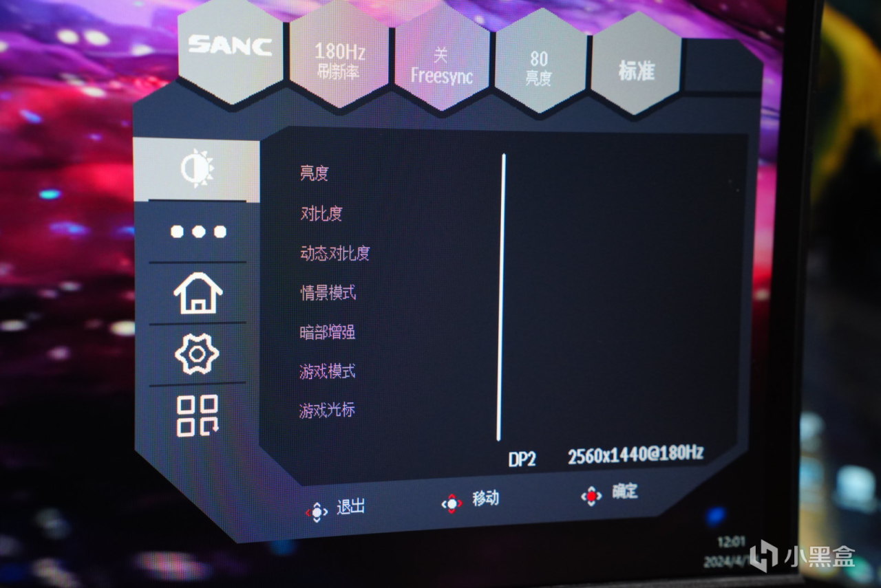 顯示器在主控方面也做了很多設置,包括但是不見限於6軸的飽和度多種遊戲模式的選擇,以及很豐富的調節區域。