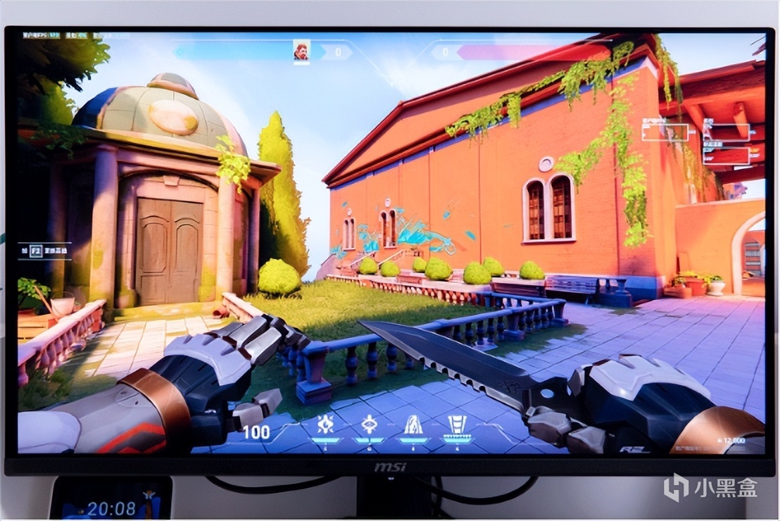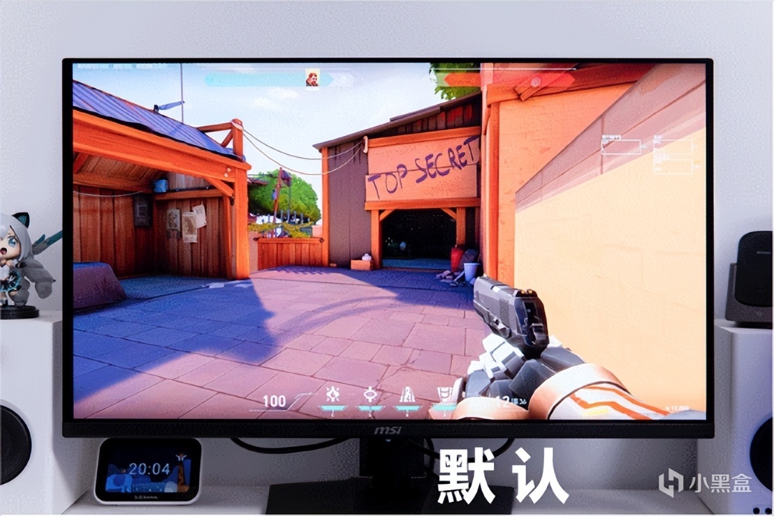 在31.5英寸大屏上玩《无畏契约》时,过小的准心在高速移动画面时很容易丢失,微星MAG 321UPX QD-OLED开启变色准心和Optix狙击镜后,可以看到画面中间部分被放大了,远处目标更清晰,准心在不同背景下会自动变色,追踪更轻松。