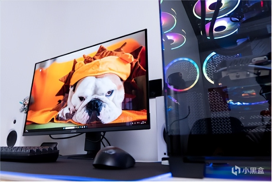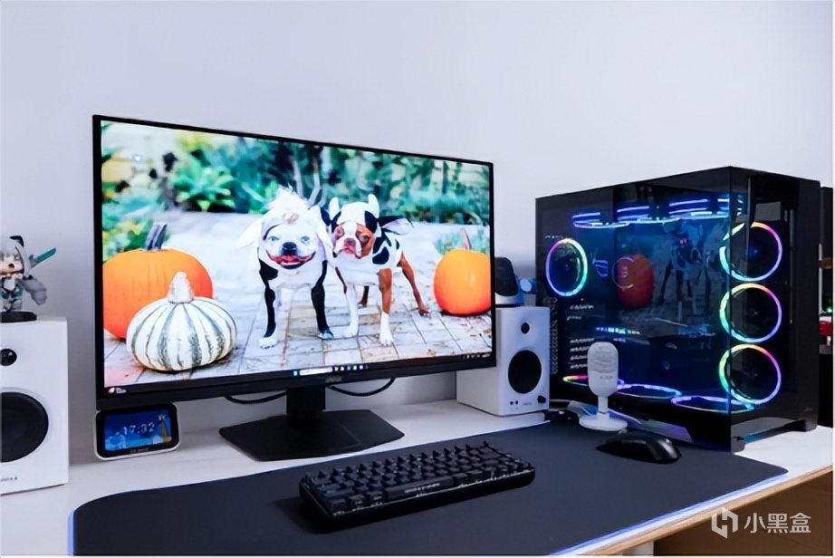 安钛克星际C8海景房属于电源侧置设计,我这里安装了4个140mm风扇+3个120mm风扇,配合360水冷,算是风扇+灯效拉满,黑色机箱+黑色显示器配白色桌面以及音箱,“熊猫风”不知道各位觉得颜值如何?