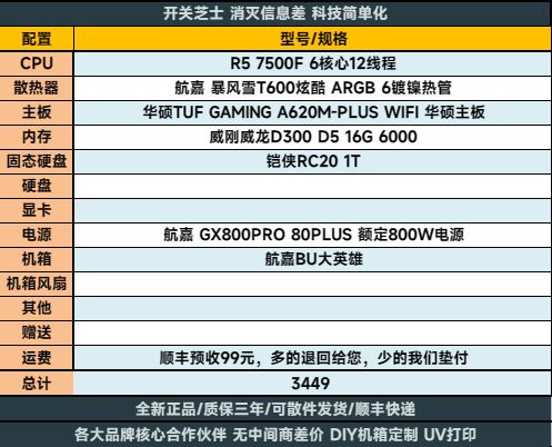 这就给大家推荐从三千到五千、从性价比到轻奢、AMD 7000系的电脑配置(现阶段打网游,英特尔实在不是对手)