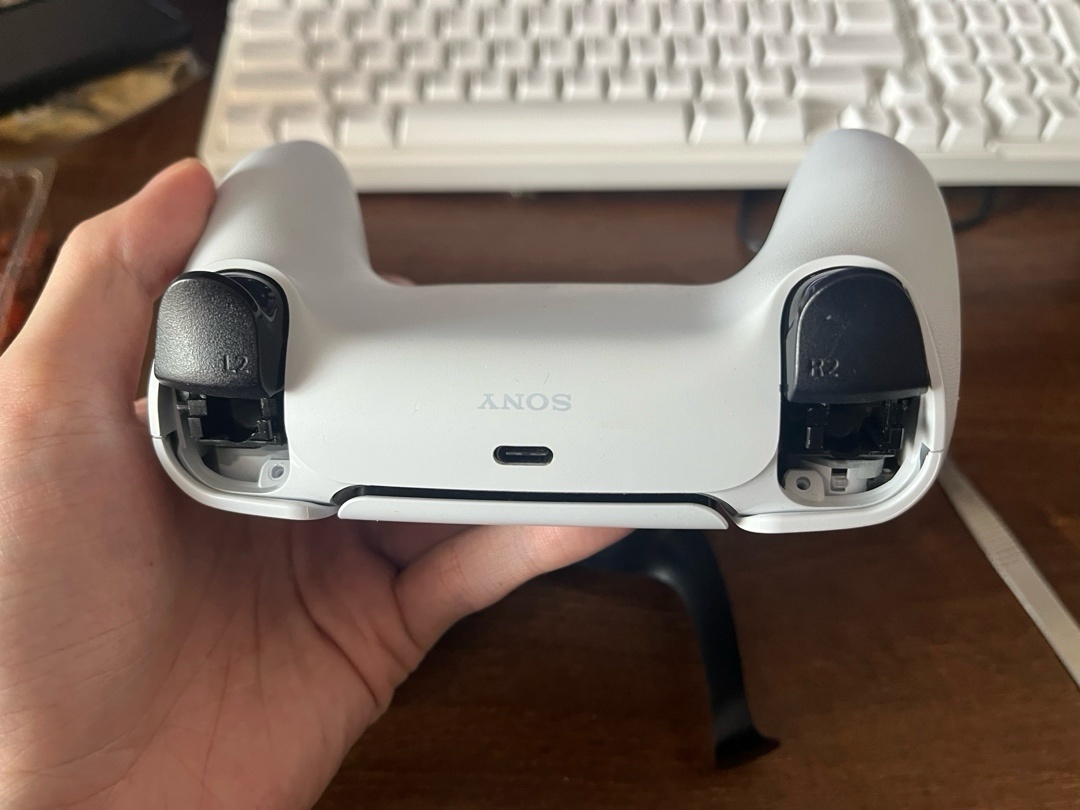 接着,不要用蠻力,輕輕把撬棒插在扳機和肩鍵的縫隙中間,撬開兩個肩鍵(R1L1)。